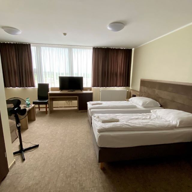 Ich organisierte nun in der Vorwoche einen groben Reiseplan und buchte schon einmal eine Rückfahrt von Warszawa (Warschau) nach Hildesheim am 20.Juni. Ein Ticket in der 1.Klasse war 10 Tage im Voraus für 74,90 € zu haben. Ansonsten wollte ich Züge und Hotels in Polen größtenteils spontan buchen, nur unsere gemeinsame Unterkunft in Słubice (ehemals die Dammvorstadt von Frankfurt / Oder) hatte ich natürlich bereits reserviert (Hotel Cargo für 33 € pro DZ). Am 12.Juni starteten wir dann um 8 Uhr per PKW gen deutsch-polnische Grenze. Weil ich gut drauf war, spendierte ich Jelen Pivo für alle – außer den Fahrer, der bekam Imperialistenbrause – und stieß mit meinen Freunden auf die Rückkehr von Fußball und Reisetätigkeit an.