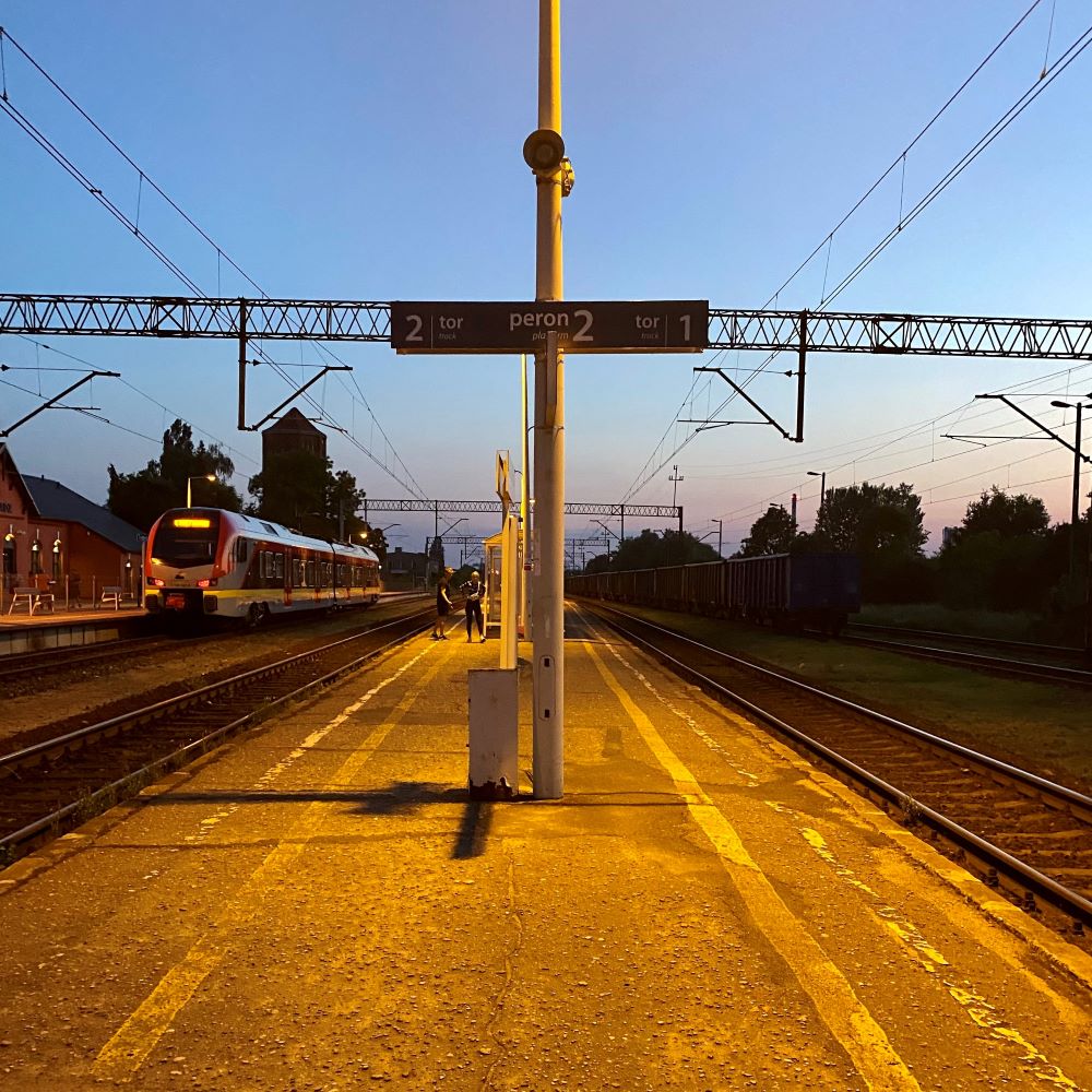 Antoine hat sogar ein Denkmal am Rynek (Marktplatz) von Sieradz bekommen. Eines von Hymie konnte ich jedoch nicht entdecken. Statt danach zu suchen, überlegte ich lieber, ob ich vielleicht irgendwo für ein Abendessen einkehren sollte (die Pasta im Incognito soll gut sein). Aber ich hatte nur noch 50 Minuten in Sieradz und die Angst den letzten Zug nach Łódź zu verpassen, war dann doch zu groß für einen Restaurantbesuch. Nicht, dass ich ewig lange auf mein Essen oder die Rechnung warten darf und die drei Kilometer von der Altstadt zum Bahnhof plötzlich im Laufschritt gemeistert werden müssen. Dann lieber gemütlich zum örtlichen Anschluss an das Schienennetz trotten und unterwegs noch zwei Hot Dogs bei Żabka erwerben. Natürlich mit der leckeren Amerykański-Sauce (Beste!).