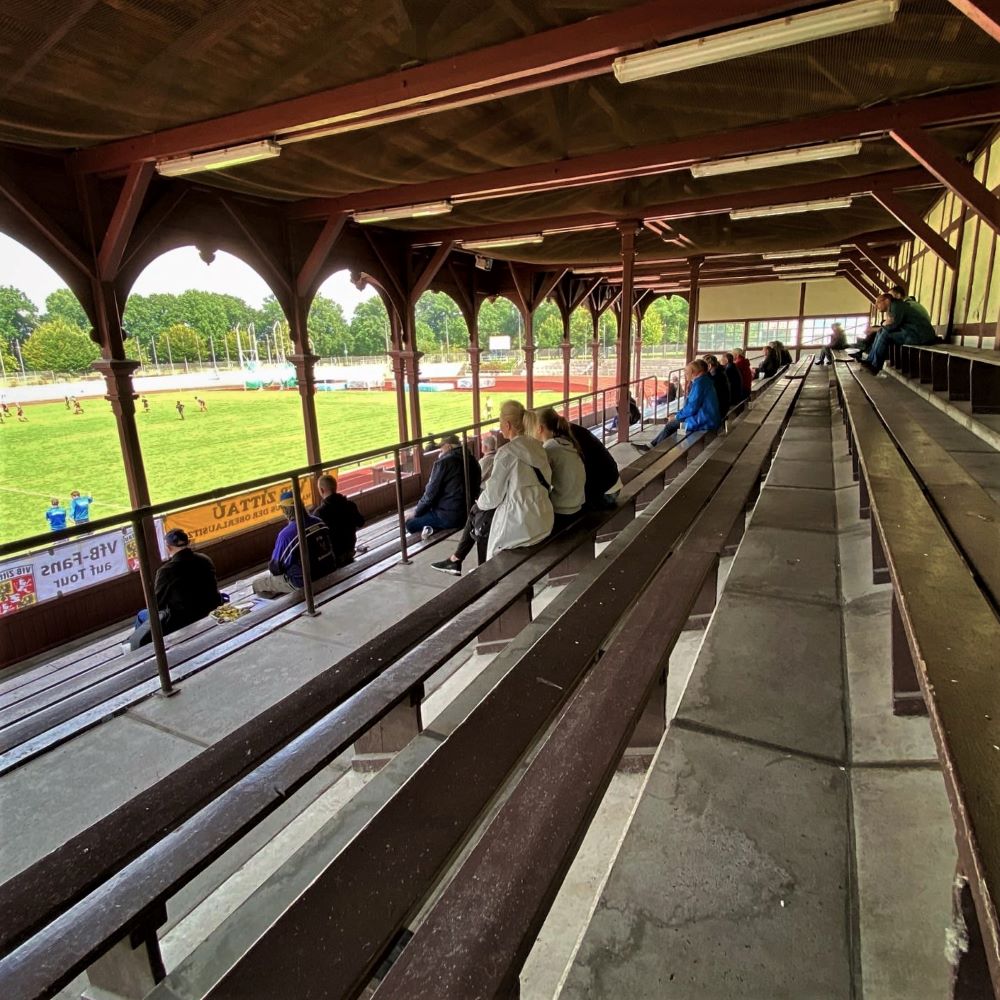 Leider war für die Zittauer nach dem dritten Jahr Oberliga Schluss. Man stieg als Drittletzter ab und sollte fortan noch bis auf die Kreisebene durchgereicht werden. Was jedoch von der glorreichen Zeit blieb, ist eine Spielstätte in exzellentem Zustand. Die Traversen wurden seinerzeit saniert und teilweise mit Sitzschalen bestückt. Außerdem wurde ein separater Gästeblock geschaffen und die markante Haupttribüne renoviert. Jene ist natürlich das Schmuckstück des Weinauparkstadions. Dieses Bauwerk aus Holz wurde am 19.August 1894 eröffnet – als das Stadion noch eine Radrennbahn war – und ist damit Deutschlands älteste noch erhaltene Tribüne in einem Fußballstadion. Wenngleich an der Weinau erst seit 1919 Fußball gespielt wird und der Titel „Älteste für den Fußball errichtete Tribüne Deutschlands“ von Düren reklamiert wird (die Holztribüne der Westkampfbahn wurde am 9.August 1914 eingeweiht). Für die Nerds: Deutschlands älteste Stadiontribüne überhaupt steht in Gotha. Sie ziert die schon lange nicht mehr genutzte Pferderennbahn am Boxberg, hat aber entsprechend keine Fußballhistorie vorzuweisen.