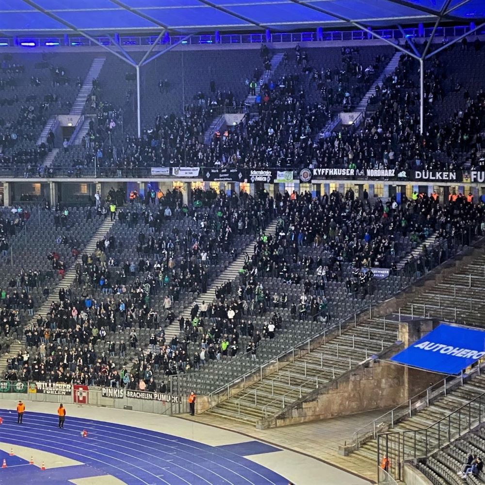 In Mönchengladbach zum Beispiel können Sottocultura & Co laut dort gültiger Verordnung bereits ohne personalisierte Tickets und ohne Abstandsregeln im Fanblock des Borussia-Parks stehen und haben deshalb bei Heimspielen wieder ihre Aktivität aufgenommen. Auswärts wird dagegen von Fall zu Fall entschieden und die Berliner Spielregeln führten zum Fernbleiben, respektive zumindest zum Entschluss nicht als Gruppe aufzutreten. Ein paar Mitglieder werden sicher angereist sein, aber auf organisierte Stimmung, Banner und sonstiges optisches Gruppenmaterial wurde verzichtet.