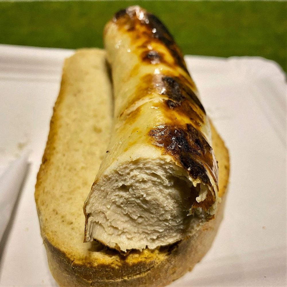 Ich wurde mit der Frage „Frustbier?“ begrüßt und 5 CHF für 0,5 Liter waren gar nicht mal so teuer. Aber der Hunger und nicht der Durst hatte mich dorthin geführt und als emotional Uninvolvierter schob ich natürlich auch keinen Frust. Also gab es jetzt eine Bratwurst mit Brot für 7 CHF. Das sind dann doch deutlich mehr Taler als an deutschen Sportstättengrills zu entrichten sind. Doch es war wenigsten eine OLMA auf dem Rost, ergo eine der besten Bratwürste der Welt. Angeblich ist es ein Frevel diese Wurst mit Senf oder gar Ketchup zu verzehren. Eine OLMA hat einen so vollmundigen Geschmack, dass sie für sich allein stehen muss. Ich glaube zwar so richtig Ärger provoziert man mit Senf o. ä. nur in der OLMA-Heimat St. Gallen, doch ich wollte nichts riskieren. Am Ende kommt der Zuger Grillmeister trotz Denizlispor-Trainingsjacke widererwartend doch gebürtig aus der Ostschweiz.