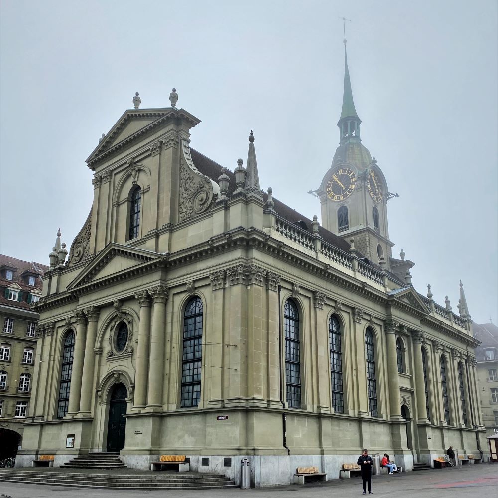 Am Sonntagmorgen waren sowohl mein Kopf, als auch der Berner Himmel etwas diesig. Na gut, waren am Ende auch ziemlich exakt fünf Liter Bier gewesen, die ich dem Körper am Vorabend zugeführt hatte. Also hab ich lieber nochmal die Äuglein ruhen lassen und bin etwas länger liegen geblieben. Danach ging es duschen und auf der Suche nach einem Badetuch fand ich im Schrank u. a. eine Yogamatte, eine Bibel und einen Regenschirm. Hm, mache ich jetzt Dhanurasanas auf der Matte und lese dabei in den Korintherbriefen oder gehe ich lieber frühstücken? Schwierige Entscheidung…