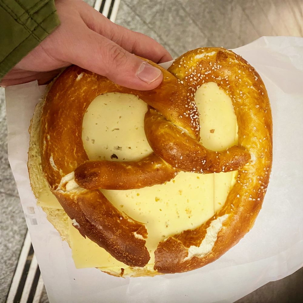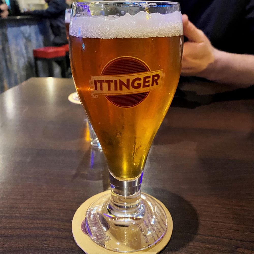 Es ging wieder via Visp zurück nach Bern und diesmal hatten wir dort, anders als auf der Hinfahrt, eine Bierlänge Aufenthalt. Im proppevollen Lokal P2 ließen wir uns den entsprechenden Gerstensaft servieren, ehe 22:27 Uhr Abfahrt in die Bundesstadt war. In jenem Zug saßen wir nun eine gute Stunde mit rotzevollen älteren Fans des FC Sion im Abteil. Die tranken Sekt aus Flaschen und lallten ihre frankophonen Lieder, wenn sie nicht gerade in Mitreisende stolperten. Für Kurzweil war also gesorgt, bis sich in Bern die Wege von Simon und mir wieder trennten. Wir holten uns noch Mitternachtssnacks beim Brezelkönig und dann verabschiedete sich Simon nach Huttwil, während ich mir am Nachmittag zum Glück den Fußweg zum Hotel gut eingeprägt hatte.