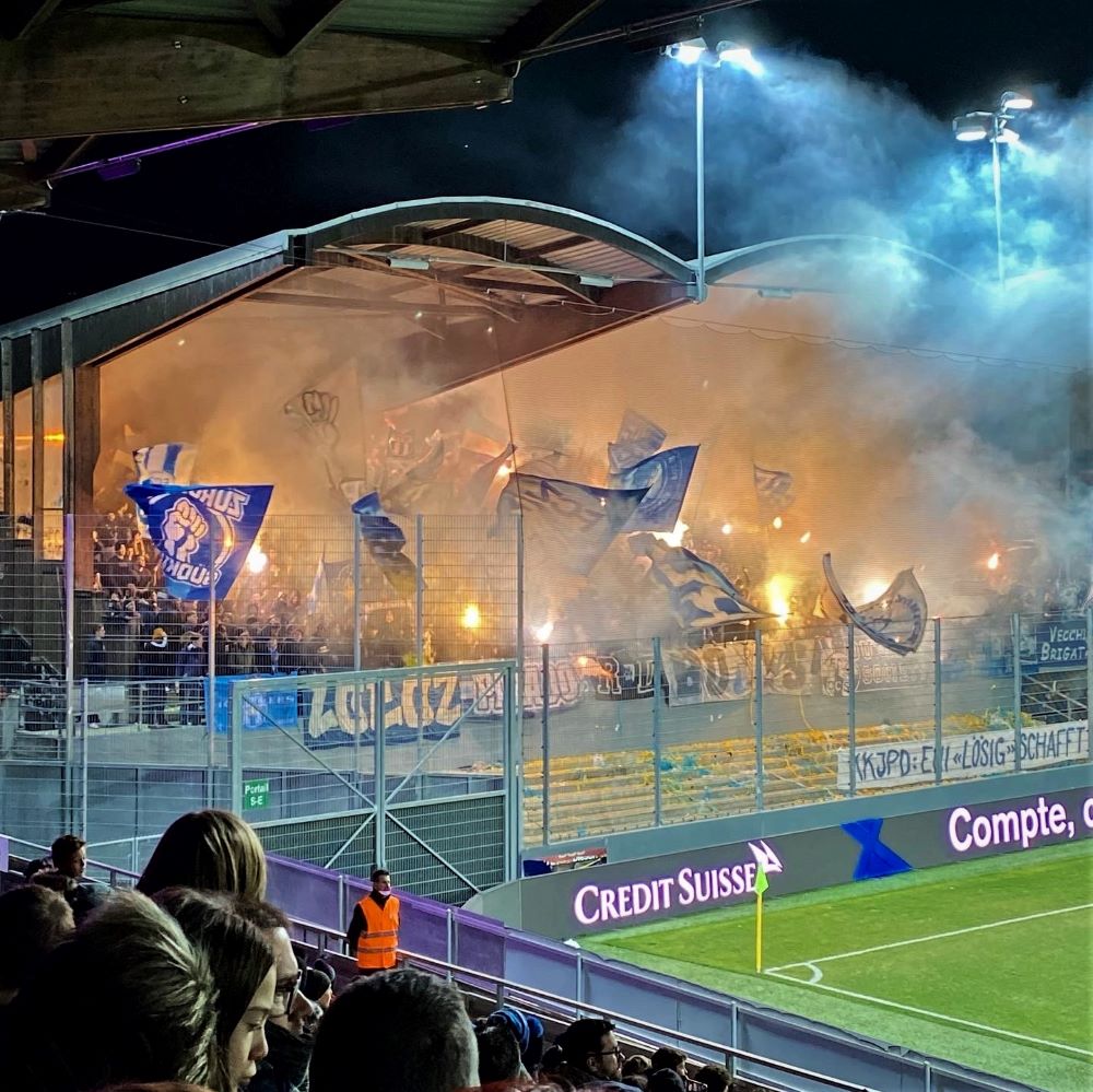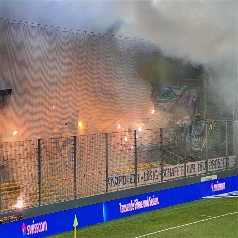 Allerdings sind es wohl auch die pyrotechnischen Untermalungen solcher Kunstwerke, welche die Regierungskonferenz der kantonalen Justiz- und Polizeidirektionen (KKJPD) just einen Tag zuvor dazu bewegt hatte, dass ab der Saison 2022/23 nur noch personalisierte Tickets für die Begegnungen der Schweizer Super League ausgegeben werden dürfen. Das hatte sich leider bereits abgezeichnet. Mit „KKJPD-Präsident Fässler will härter gegen Fussball-Chaoten vorgehen“ waren einige der Meldungen in den vergangenen Wochen überschrieben. Jüngst gab es besonders beim Zürcher Derby und beim Duell Luzern gegen St. Gallen schlagzeilenträchtige Scharmützel und die Hardliner forderten sogar ein sofortiges Gästefanverbot im Schweizer Profifußball, welches jedoch vorerst vom Tisch ist.