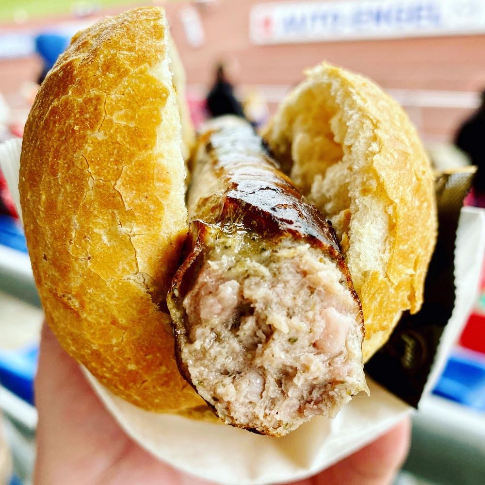 Der 1.FC Lok blieb auch nach dem Ausgleich am Drücker, musste aber in der 35.Minute einen weiteren Nackenschlag hinnehmen. Diesmal war Steffen Korsch für die Germanen erfolgreich. Fünf Minuten später wollte ich mir dann schon mal vor dem Halbzeitansturm eine Wurst organisieren, doch irgendwie bin ich einmal falsch abgebogen und war plötzlich auf der Haupttribüne. Hier gab es zum Glück ebenfalls Harzer Schmorwurst à 3 € im Brötchen und weil es ein wenig zu regnen begann, blieb ich auf der überdachten Haupttribüne und sah von meinem neuen Premiumplatz gleich das nächste Tor. Sascha Pfeffer war für den Europapokalfinalisten von 1987 vom Elfmeterpunkt erfolgreich. Mit 2:2 ging es somit in die Kabinen.
