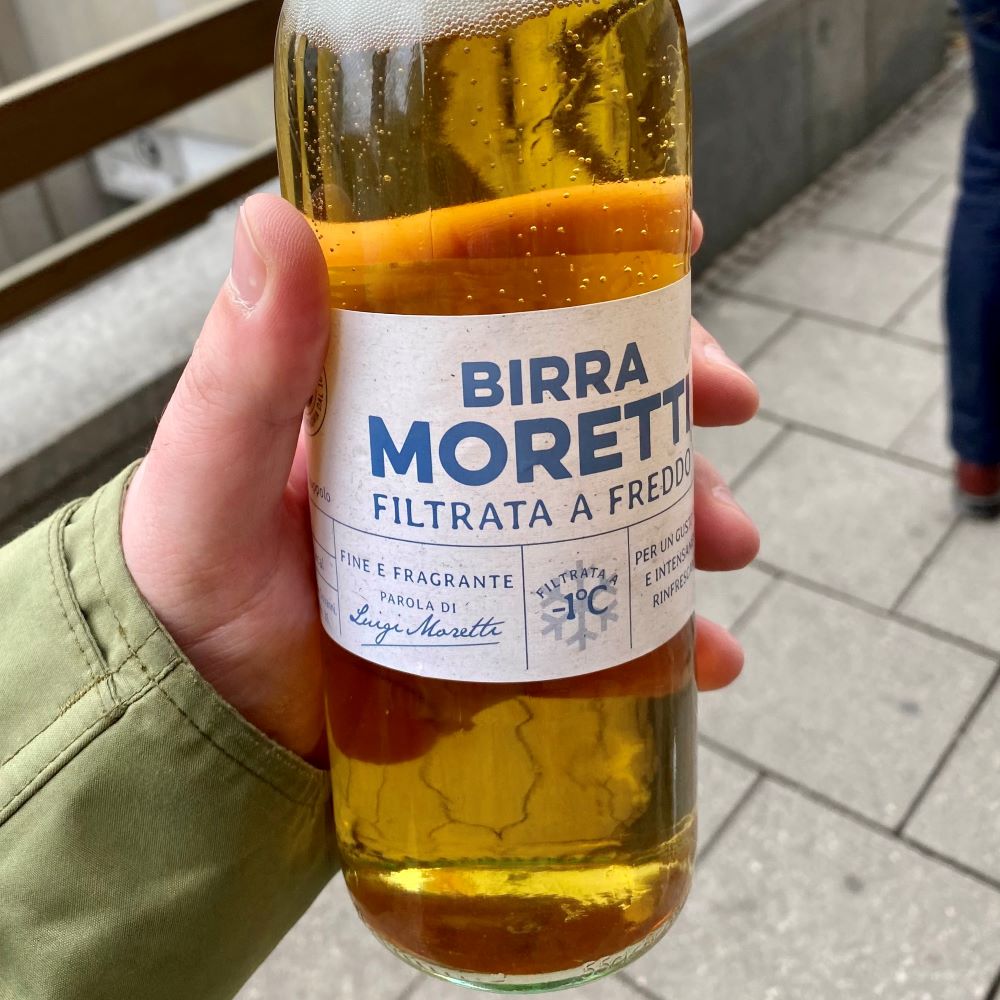 Entsprechend war ich zwei Nächte hintereinander in München und wählte als Herberge das bahnhofsnahe Ibis (***) in der Maxvorstadt für 65 € pro Nacht. Ich erreichte am Karsamstag um 11:39 Uhr die Landeshauptstadt des Freistaats Bayern und deponierte erstmal mein Gepäck in besagter Unterkunft. Dann sollte es nach Giesing gehen, wo ich mit meinem alten Kumpel Chuck verabredet war. Mit diesem renommierten Fanzineschreiber (Drinking & Driving) und Reisepodcaster (Die Welt unser Spielplatz) traf ich mich an der stadionnahen U-Bahn-Station Silberhornstraße. Er drückte mir außer der Dauerkarte eines verhinderten Freundes auch gleich ein Bier in die Hand. Birra Moretti, filtrata a freddo (kaltfiltriert). Exquisit, exquisit… Aber wir sind schließlich auch im noblen Monaco di Baviera und nicht in Wuppertal oder Bitterfeld.