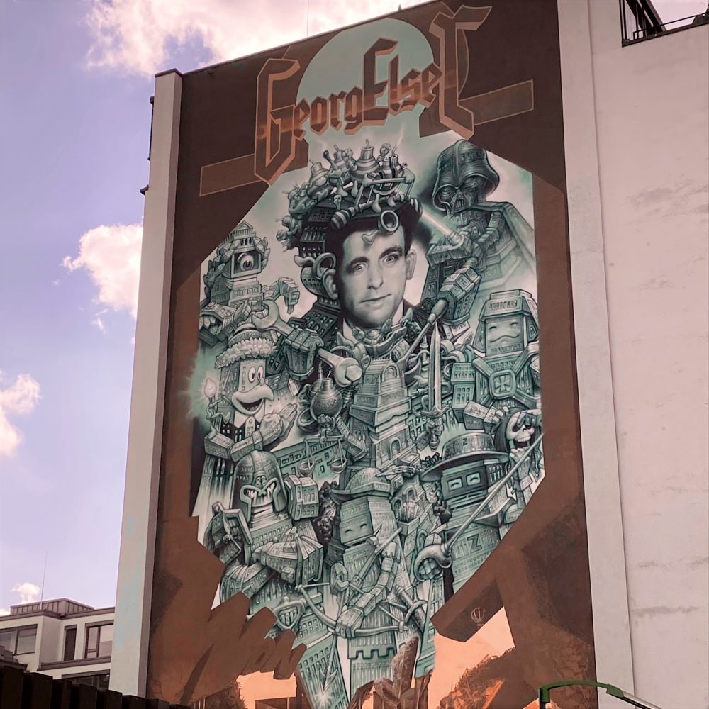 Doch zurück in die Gegenwart; denn auf das Thema Räterepublik bin ich wegen des mutmaßlich größten Wandbilds Münchens gekommen, welches in Giesing zu finden ist und natürlich von mir begutachtet wurde. 2019 haben der Künstler WON und seine Crew ABC die ehemalige Umspannanlage der Münchner Stadtwerke in Giesing besprühen dürfen. Nun grüßen mit Kurt Eisner, Sarah Lerch-Rabinovitz, Erich Mühsam, Gustav Landauer und Ernst Toller prägende Köpfe der Novemberrevolution und der Räterepublik von der Gebäudefassade. Kunstvoll wird dabei das Ringen zwischen Revolution und Konterrevolution dargestellt. Wahrscheinlich ist Giesing der beste Ort für dieses Kunstwerk.