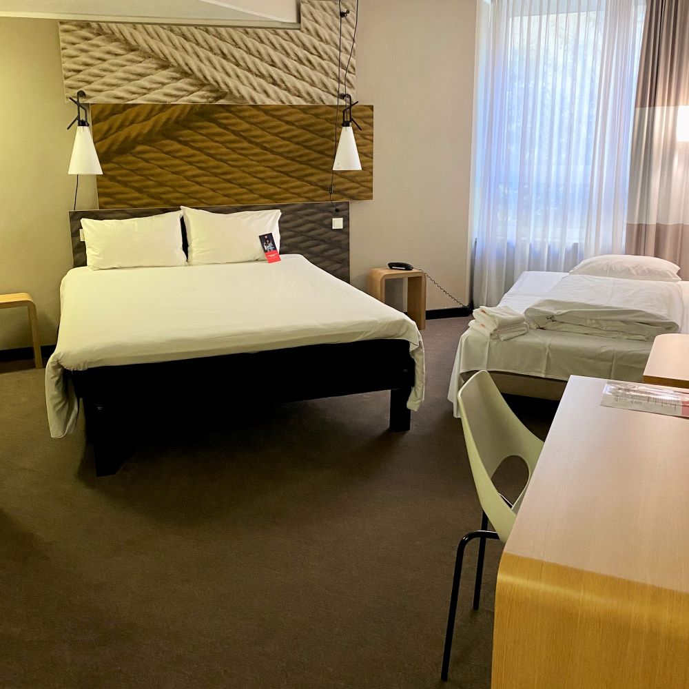 Acht Minuten später stand ich wieder in der Hotellobby vom Ibis, nahm meinen Rucksack entgegen und checkte ein. Man meinte es gut mit mir und gab mir die Schlüsselkarte zu einem riesigen Zimmer mit gleich zwei großen Betten. Dabei hatte ich explizit ein Einzelzimmer gebucht. Na ja, meinem Körper war es letztlich doch ziemlich egal, wie viele Quadratmeter sich noch um das Bett herum befanden. Der war froh jetzt mal drei Stunden zu ruhen, da er das vorige Nacht nur sechs Stunden tat.