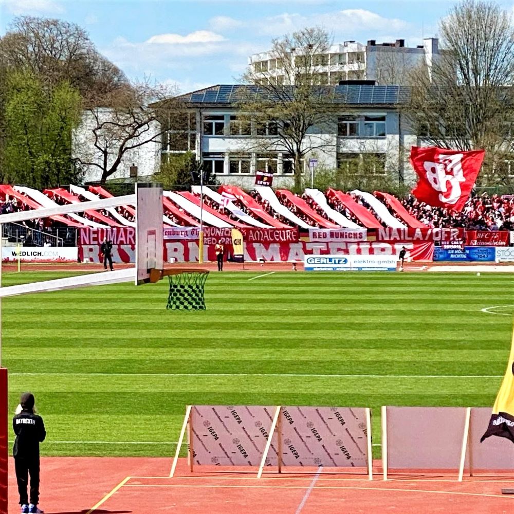 In den 1970er und 1980er Jahren spielten die Altstädter viele Jahre zweitklassig. Beste Platzierung war seinerzeit ein 2.Platz in der 2.Bundesliga Süd 1979. In den Aufstiegsspielen zur 1.Bundesliga musste man sich allerdings Bayer 05 Uerdingen geschlagen geben. Außerdem konnte man 1980 die Erstvertretung des heutigen Gegners aus dem DFB-Pokal werfen. 1990 stieg man jedoch aus der 2.Bundesliga ab und es folgten drei wechselhafte Jahrzehnte zwischen Dritt- und Sechstklassigkeit. Doch nun schickt sich die Altstadt an ein Comeback im bezahlten Fußball zu feiern. Letztes Jahr kratzte man bereits an der 3.Liga und diese Saison zieht man einsam an der Tabellenspitze seine Kreise. Heute kam mit der Zweitvertretung des FC Bayern immerhin der ärgste Verfolger ins Hans-Walter-Wild-Stadion. Doch auch die Truppe von Ex-Profi Martín Demichelis weist bereits acht Punkte Rückstand auf die Oberfranken aus und die SpVgg Bayreuth war vor einer Rekordkulisse bis in die Haarspitzen motiviert, um letzte Zweifel am Aufstieg auszuräumen.