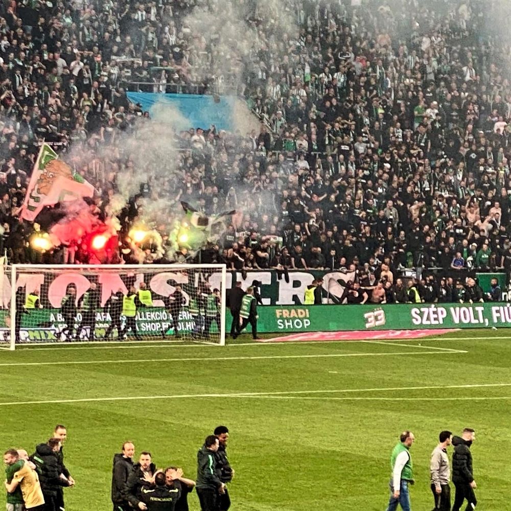 Heute blieb der Ausgang lange offen und in der Nachspielzeit schien UTE die Meisterfeier des Rivalen tatsächlich noch vertagen zu können. Yohan Croizet traf und brachte den Gästeblock zum Beben. Doch den Ultra Viola Bulldogs, Viola Fidelity & Co war dieser kleine Triumph nicht vergönnt. Bei der Ballannahme von Croizet kam es wohl zu einem Handspiel und nach zwei Minuten Videostudium des Schiedsrichters wechselte der Spielstand auf der Anzeigetafel wieder von 2:2 auf 2:1. Da wenig später der Schlusspfiff ertönte, konnte der Heimanhang gleich durchfeiern. Die Mission „Meisterschaft im Derby“ ist geglückt und der Ferencvárosi Torna Club durfte den insgesamt 33sten Meistertitel der Vereinsgeschichte mit seinen Fans zelebrieren.