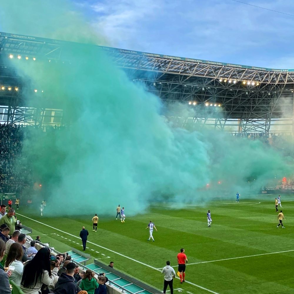 In der nahezu ausverkauften Arena ließ Tokmac Chol Nguen – ein Norweger mit südsudanesischen Wurzeln – den Mob von Fradi in der 19.Minute erstmals jubeln. Erste Fackeln untermalten den verbalen Ausdruck der Freude. Jetzt bekam der Favorit auch die nötige Sicherheit und das nächste Tor schien nur eine Frage der Zeit. 20 Minuten später war es dann soweit; Bálint Vécsei provozierte weitere Leuchtfeuer und Rauchschwaden in grün und weiß. Mit der Führung konnte die von Stanislaw Salamowitsch Tschertschessow trainierte Meistermannschaft in spe entspannt zum Pausentee schreiten.