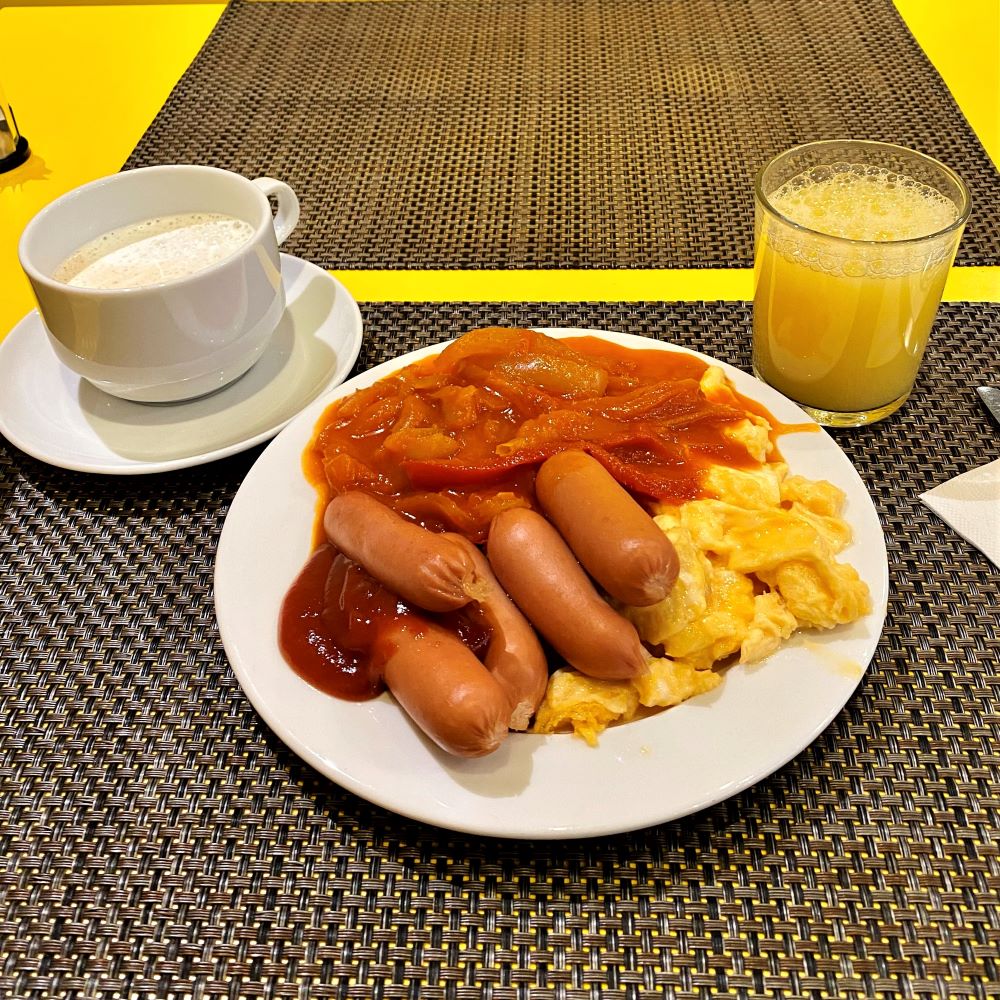 Sonntagmorgen lösten sich meine Augenlider gegen 7 Uhr voneinander. Ich presste sie zunächst noch einmal zusammen und überlegte ob ich noch ein, zwei Stündchen schlafen sollte oder ob es vielleicht sinnvoller wäre schon jetzt aufzustehen. Zu dieser Zeit dürfte sich beim Frühstück der Andrang noch in Grenzen halten. Gegen 9 Uhr wohl nicht mehr… Also kurz geduscht und schlaftrunken zum Büffet geschlurft. Damit ist es endgültig belegt; Essen ist mir ein noch größeres Grundbedürfnis als Schlafen. Aber das ist wohl nicht nur für mich keine Überraschung.