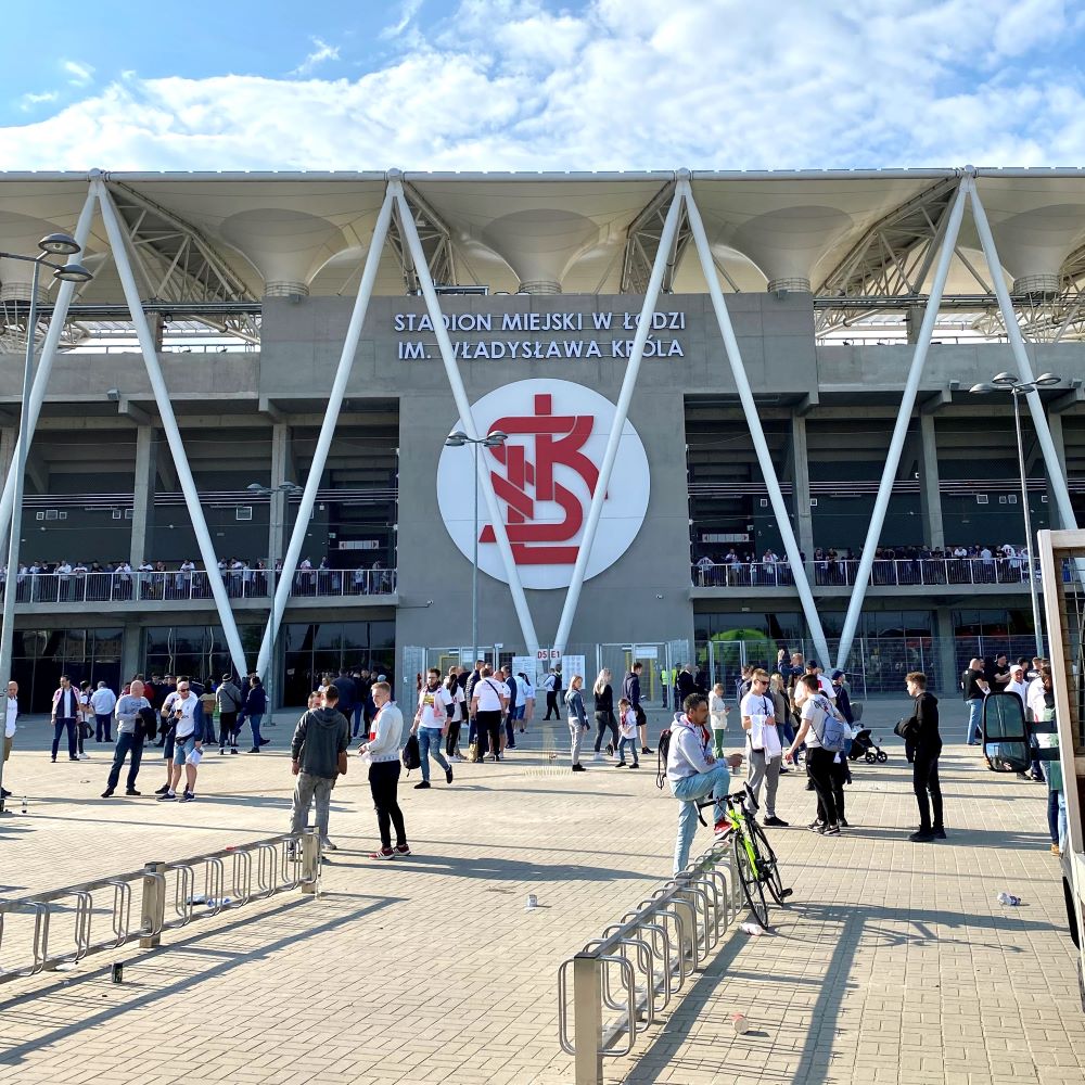Um 17 Uhr und damit genau eine Stunde vor Anpfiff, erreichte ich schließlich das frisch fertiggestellte Stadion Miejski w Łodzi. An diesem Ort wurde das alte städtische Stadion 2014 abgetragen und zunächst nur mit der heutigen Haupttribüne ersetzt. Weil ŁKS 2013 zahlungsunfähig geworden war und in der 5.Liga neustarten musste, blieb jener provisorische Zustand einige Jahre erhalten. Bei meinem Erstbesuch im Juli 2018 musste ich deshalb auch noch mit einer Tribüne vorliebnehmen. Allerdings wurde nach dem damaligen Zweitligaaufstieg von ŁKS beschlossen, dass die Bagger wieder rollen und jedes Jahr eine Tribüne dazukommen soll. Die Pandemie verzögerte den Bau wahrscheinlich nochmals, aber im Vormonat konnten die Stadt als Eigentümer und ŁKS als Hauptnutzer endlich die große Einweihung feiern. 18.000 Zuschauer passen nun ins Stadion und heute war bis auf in den Pufferzonen jeder Platz besetzt (15.998 lautete die offizielle Zuschauerzahl).