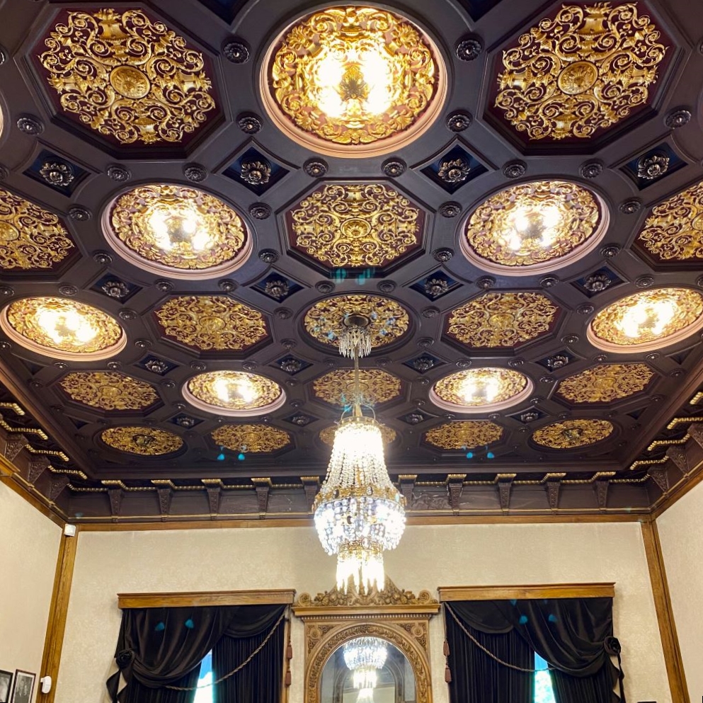 Na ja, im Gruzińska gab es auch die ganzen kulinarischen Klassiker der Kaukasusregion und ich war zufrieden, als eine Flasche Borjormi und Krautwickel im Tontopf (mit Kartoffeln, Tomaten und Backpflaumen) auf dem Tisch standen. Am Ende war ich umgerechnet 10 € los und erstmal gesättigt. Nun wollte weiter der Schöngeist in mir befriedigt werden und deshalb suchte ich den Pałac Izraela Poznańskiego (Izrael-Poznański-Palast) auf. Der so genannte Louvre von Łódź ist ein herrschaftlicher Palast, den sich der steinreiche Textilfabrikant Izrael Poznański im 19.Jahrhundert errichten ließ. Dass die Geschäfte seinerzeit gut liefen, zeigt Poznańskis einstige Residenz außen wie innen eindrucksvoll. Heute beherbergt der Palast das Stadtmuseum, in welches ich für 18 Złoty (ca. 3,80 €) eintreten durfte. Im ersten 1.OG konnte ich nun zahlreiche Säle und Gemächer besichtigen (weitgehend im Originalzustand), während sich im EG der Familien- und Firmengschichte der Poznańskis gewidmet wird.