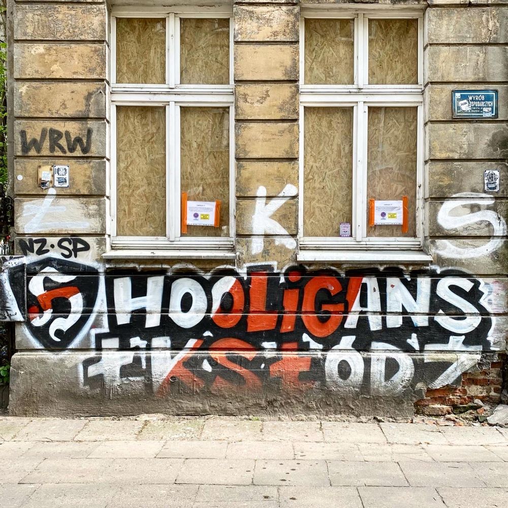 Nach der Kaffeepause ging es durch Stare Polesie (Alt-Polesie) per Spaziergang zum Stadion. Dabei gab es für mich weiterhin jede Menge Fassadenmalerei zu entdecken. Zwar war die künstlerische Qualität nicht mehr ganz internationales Topniveau, aber der Subtext dafür um so deutlicher. Hier in Stare Polesie regiert ŁKS und sonst keiner. Nahezu jede Mauer, jede Fassade und jeder Hinterhof waren mit den Insignien des Łódźki Klub Sportowy verziert. Manche Jahre, wenn nicht gar Jahrzehnte alt. Andere dagegen frisch gepinselt oder gesprüht. Dieses Viertel hat einen rauen, aber auf mich durchaus anziehenden Charme.