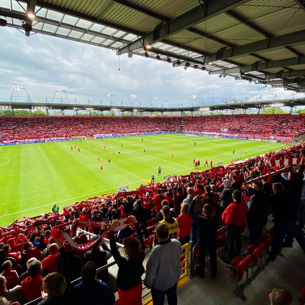 Der zweite Tag meiner neuntägigen Reise sollte mich abermals ins bereits oft besuchte Łódź (Lodsch) führen. Widzew hatte nicht nur drei Wochen zuvor im Derby gegen ŁKS brilliert, sondern die ganze Saison über fleißig gepunktet. Man ging als Tabellenzweiter in den heutigen letzten Spieltag und würde man diesen Platz behaupten, dürfte man mit Abpfiff den Aufstieg in die Ektraklasa feiern. Das Stadion war selbstverständlich ausverkauft und es versprach ein spannender und stimmungsvoller Fußballnachmittag zu werden. Zum Glück war ich akkreditiert und konnte dem Spektakel unter besten Bedingungen für Berichterstatter beiwohnen.