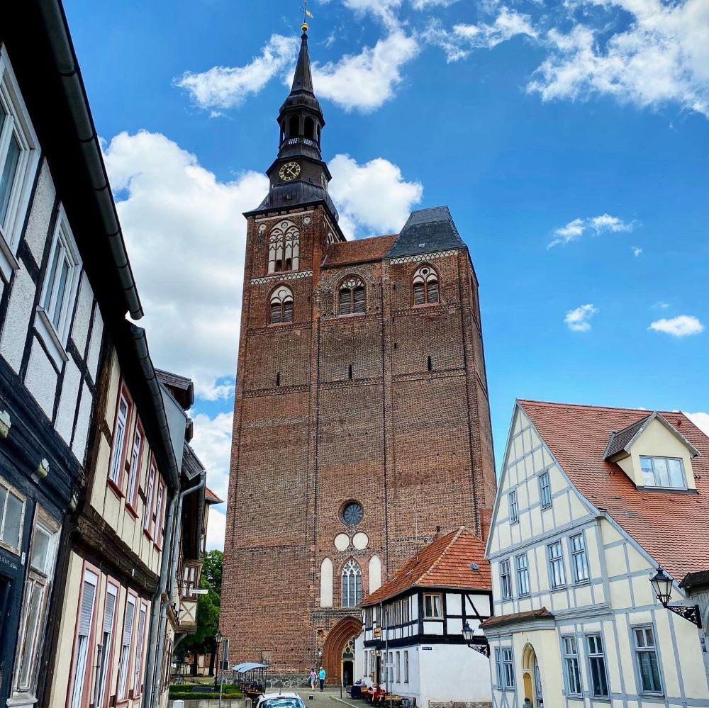 Im wahrsten Sinne herausragend aus dieser Epoche ist natürlich die Marktkirche St. Stephan. Der 87 Meter Nordturm dieser gotischen Hallenkirche ist in der vorwiegend flachen Altmark weithin sichtbar und überragt alle elf Türme der Burg und der Stadtbefestigung. Auch im Inneren ist die Kirche sehr imposant und mir gefiel besonders das reich verzierte Chorgestühl. Außerdem kam ich um 13 Uhr pünktlich zu einem kleinen Konzert eines Organisten hereinspaziert. Bespielt wurde dabei die berühmte Scherer-Orgel aus dem Jahre 1624, die laut ausliegender Broschüre zu den zehn wertvollsten historischen Orgeln Europas gezählt wird.