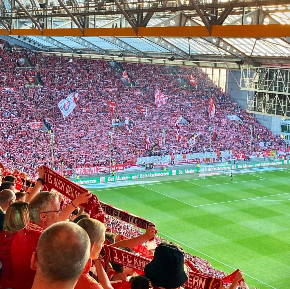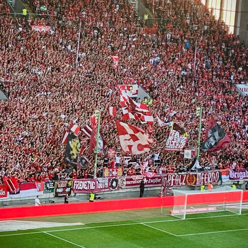 Der Teufelsmob rastete nun natürlich komplett aus und auch in meinem Block flogen dutzende Bierbecher in die Luft. Deren Inhalt ergoss sich zum Teil auf den Schreiber dieser Zeilen und das hatte schon Symbolkraft. Anstatt, dass ich mich wie erhofft an bedröppelten Pfälzern erfreuen konnte, stand ich hier nun wie ein begossener Pudel und hatte als Einziger nichts zu feiern. 96 Sekunden später war Schlusspfiff und ich machte mich sofort auf zum Parkplatz. Bergab ging das natürlich flott und um 22:45 Uhr waren Bene, Abdi, Milano Pete und ich wieder am Auto vereint. Mit einem „1954 hat euch bestimmt mehr weh getan, als 2022 uns“ auf den Lippen ging es punktlos nordwärts.