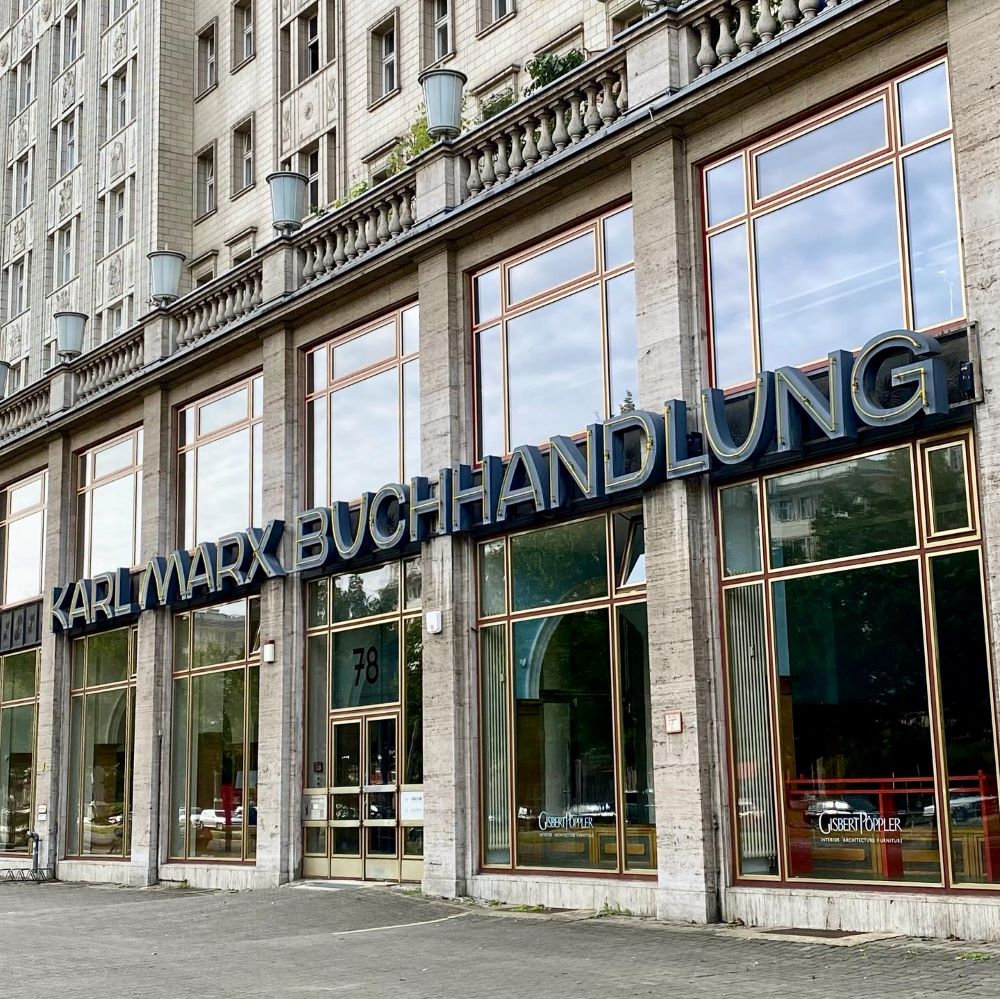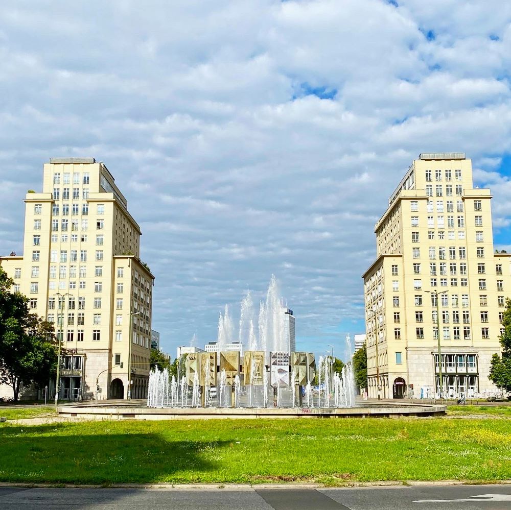 Also spazierte ich ohne Blick auf die Uhr durch Berlin und begann meinen Trek am Alex. Von dort wollte ich endlich mal wieder die jedes Mal auf’s Neue beeindruckende Karl-Marx-Allee entlang spazieren. Die hieß bis 1949 Große Frankfurter Straße, wurde jedoch mit Gründung der Deutschen Demokratischen Republik (DDR) in Stalinallee umbenannt. Da es schon vor dem Zweiten Weltkrieg eine wichtige Magistrale von der Stadtmitte nach Osten (Richtung Frankfurt / Oder) war, bot es sich an dieser Stelle an eine repräsentative Prachtallee nach sowjetischen Vorbild anzulegen. Zumal besagter Krieg für großflächigen Zerstörungen entlang dieser Straße gesorgt hatte.