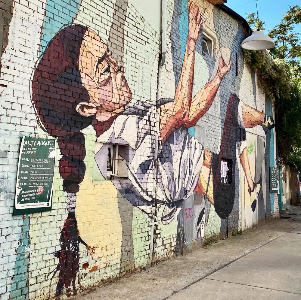 Gut gestärkt ging es anschließend tiefer nach Friedsrichshain hinein. Mal wieder durch den Simon-Dach-Kiez schlendern, sich dort an urbaner Kunst erfreuen und zugleich an Feiernächte wie im Oktober 2016 erinnert werden (siehe Berlin 10/2016) war meine Intention. Mein Hauptziel war allerdings das RAW-Gelände. Das ehemalige Reichsbahnausbesserungswerk Berlin im Süden Friedrichshains ist mutmaßlich das größte Kulturareal Deutschlands. Etliche Kultur- und Sporteinrichtungen, Künstlerateliers, Galerien, Konzerthallen, Musikclubs und gastronomische Betriebe befinden sich heute auf dem Gelände und an den Fassaden wimmelt es nur so von Streetart.