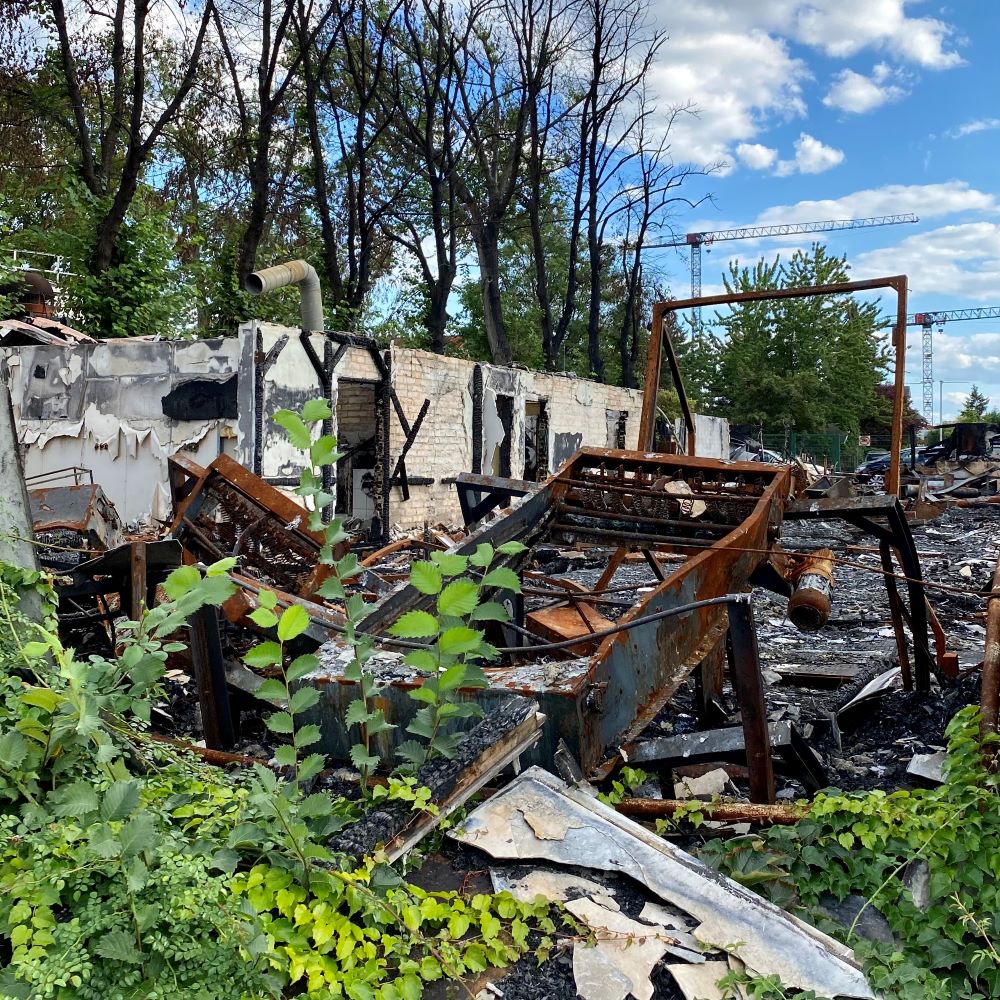Ansonsten fiel auf der ca. 3.500 Zuschauer fassenden Anlage noch unweigerlich ins Auge, dass jüngst (im Mai 2022) das Sportcasino des Vereins abgefackelt wurde. Vom einst geselligen Zentrum der KSC- und KFC-Sportler blieb nur noch Schutt und Asche übrig. Ein mutmaßlich 21jähriger Brandstifter wurde in der Feuernacht festgenommen, der Prozess steht jedoch noch aus. In jedem Fall ist das Gebäude ein Totalverlust und wann ein Neubau erfolgen kann, steht noch in den Sternen. Vielleicht kann der große Nachbar von der Alten Försterei mal zum Benefizspiel anrücken? Die Unioner trotzten den Bayern übrigens ein Remis ab. Es war also für alle Köpenicker Fußballsportler ein erfolgreicher Nachmittag.