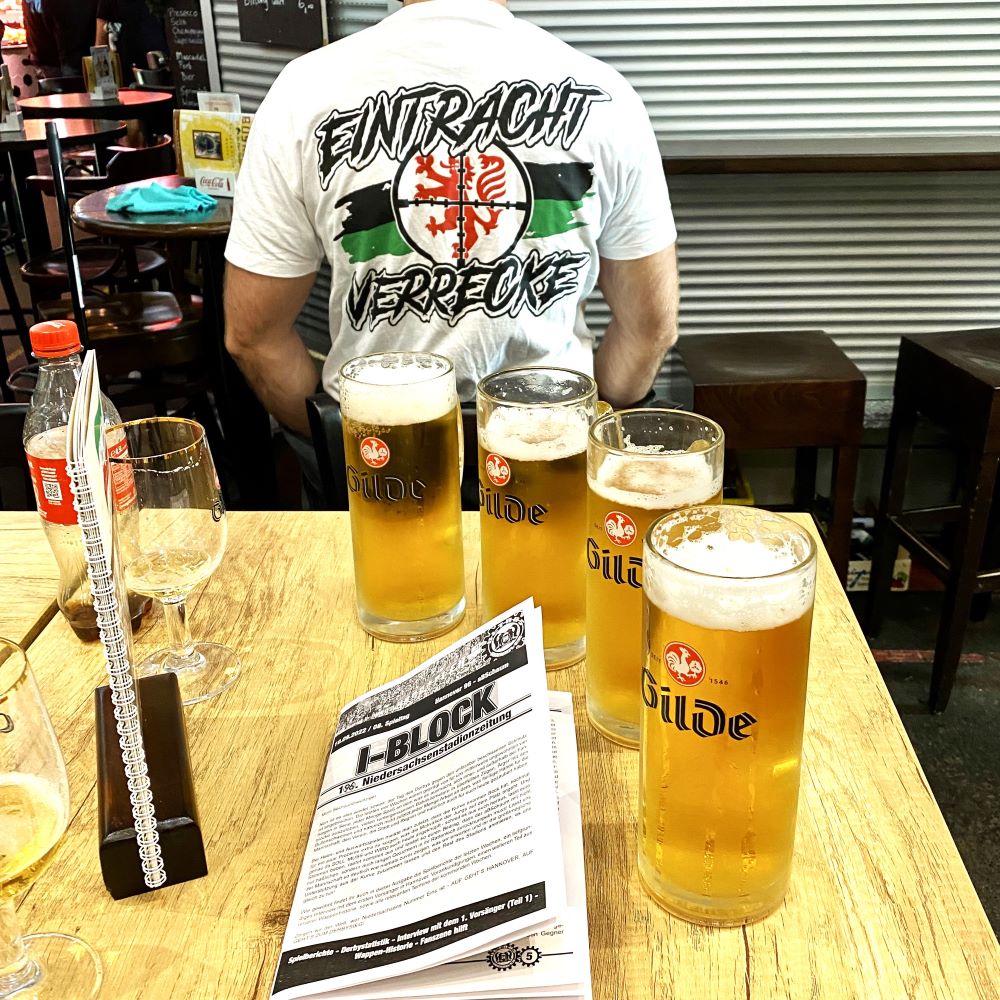 Zwei Wochen Urlaub im September wurden bei mir mit dem Derby des Hannoverschen SV gegen den Braunschweiger TSV eingeläutet. Am Morgen des Monatszehnten saß ich mit diversen Fußballfreunden aus Stadt und Kreis Hildesheim um 7:06 Uhr in der S-Bahn nach Hannover. 8 Uhr war Szenetreffpunkt in der Altstadt und Pünktlichkeit ist bekanntlich eine Tugend. Wie ein Großteil der Fans zog es uns erstmal zum Frühstücken und Frühschoppen in die Markthalle.