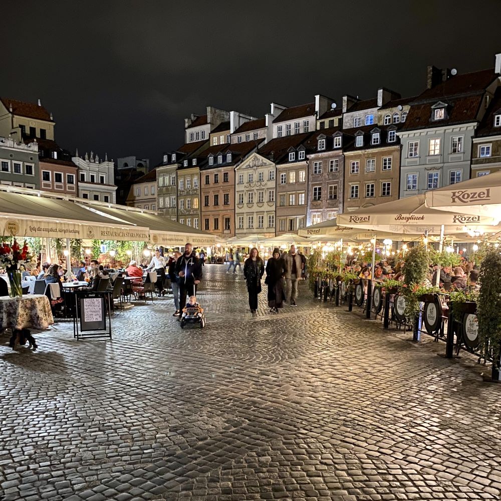 Es gab zwar weiter Ermahnungen von Mitreisenden und der Schaffnerin, aber als auch in Kutno keine Polizei zustieg, war klar, dass die Drohung „… sonst fliegt ihr am nächsten Bahnhof aus dem Zug“ obsolet geworden war. Denn der nächste Bahnhof war gute 90 Minuten nach Kutno der Westbahnhof von Warszawa. Glatto und ich stiegen wenig später Warszawa Centralna aus und von dort ging es zu Fuß in die Altstadt. Der Erstbesucher Glatto sollte und wollte schließlich schon mal was sehen von Polens Hauptstadt. Er war gleich begeistert von der Skyline mit ihren Wolkenkratzern, die er so nicht erwartet hatte. Auch der Pałac Kultury i Nauki (Kulturpalast) machte Eindruck bei meinem Mitreisenden. Zumal just die Nacht hereingebrochen war und alles nett angeleuchtet wurde (ein Generalsparplan Energie ist in Polen anscheinend noch nicht verabschiedet).