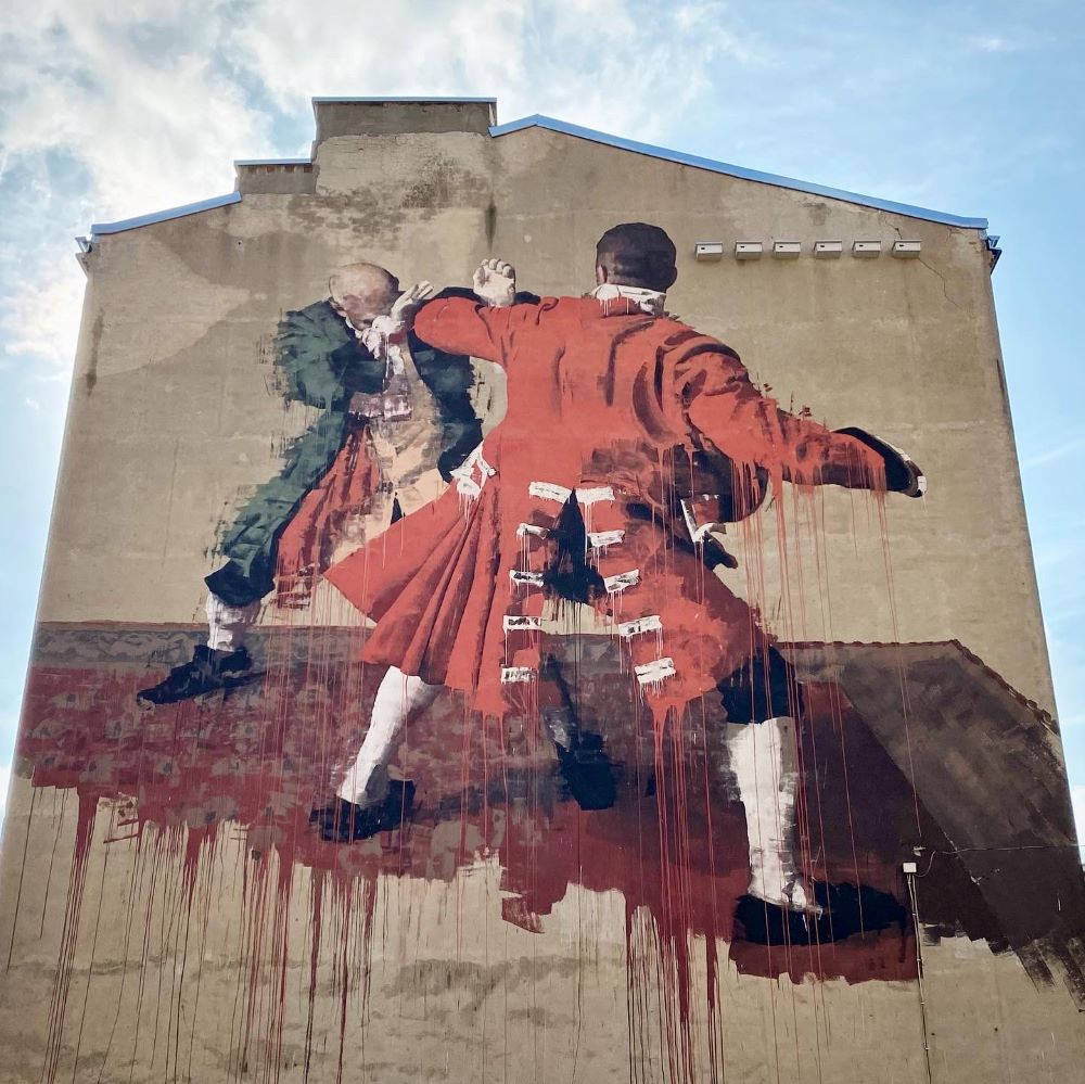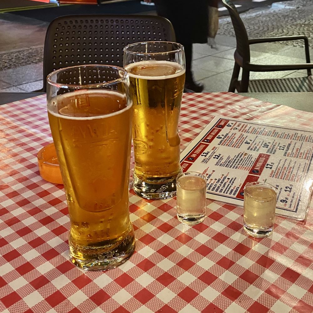 Nachdem wenig später alle großen Wandbilder Pragas geknipst waren, ging es wieder zurück ans Westufer der Wisła. Auch hier standen weiter Sehenswürdigkeiten und Streetart auf dem Programm. Aber wir wollten es touristisch auch nicht übertreiben und ließen uns gegen 14:30 Uhr das nächste Bier zapfen. Da bereits 18:45 Uhr Anpfiff war, mussten wir uns außerdem entscheiden, ob wir schon am späten Nachmittag zu Abend essen oder bis nach dem Spiel warten. Wir waren uns jedoch schnell einig, dass wir nicht nochmal so spät wie am Vortag essen wollen und suchten deshalb gegen 16 Uhr den vornehmen Georgier Rusiko am Teatr Narodowy (Nationaltheater) auf.