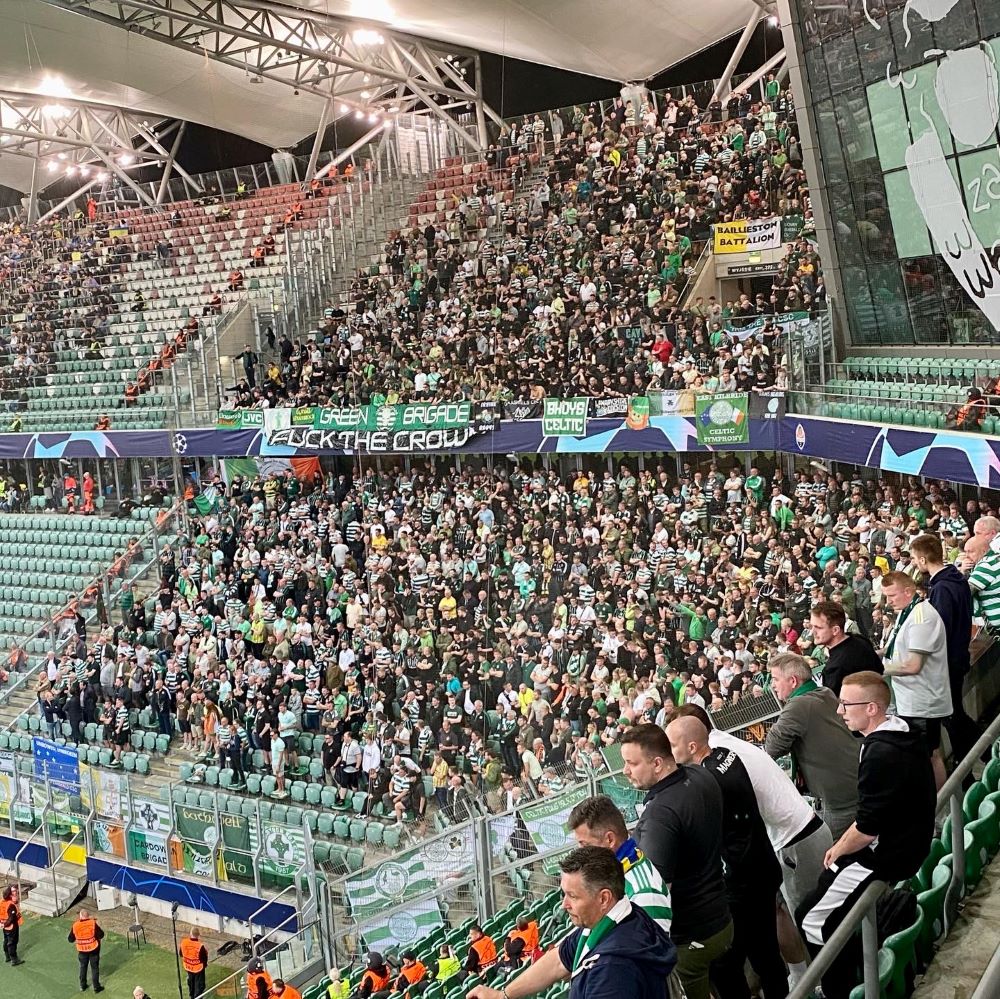 Das seit 1996 vom ukrainisch-tartarischen Oligarchen Rinat Achmetow finanzierte Schachtar konnte in der 29.Minute durch einen Treffer von Mykhailo Mudryk ausgleichen und hatte insgesamt ein leichtes Chancenplus. Einer weitgehend ausgeglichenen und sehr fairen Partie (nur eine Gelbe Karte im ganzen Spiel) waren jedoch keine weiteren Tore vergönnt, so dass man sich schiedlich-friedlich mit 1:1 trennte. Konnten die Celtic-Anhänger wahrscheinlich noch besser als die Ukrainer mit leben und feierten ihr Team nach Abpfiff entsprechend. Auch die 90 Minuten zuvor herrschte durchgehend gute Stimmung bei den Schotten bzw. Iren. Kein unvergesslicher Fußballabend und sicher kein Vergleich zu einem stimmungsvollen Heimspiel von Legia, aber es war alles in allem nett genug, um das Stadion zufrieden zu verlassen.