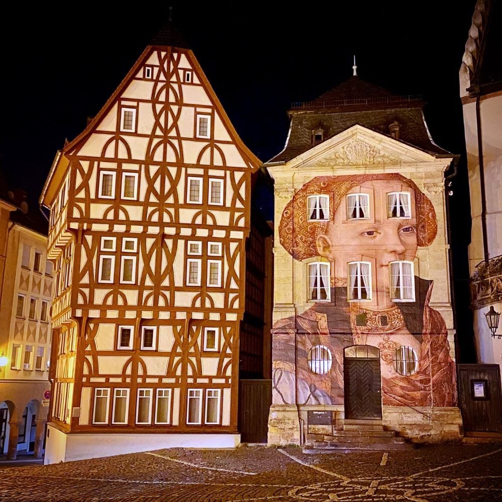 Von Miltenberg ging es am Abend weiter nach Michelstadt. Ich erreichte die romantische Fachwerkstadt im Odenwald erst nach Einbruch der Dunkelheit, so dass ich das Touristische auf den Sonntagvormittag vertagte. Dabei war heute durch das Weinbrunnen- und Kirchweihfest sogar richtig was los im sonst eher beschaulichen Michelstadt. Rund um das historische Rathaus waren Fressbuden, Fahrgeschäfte und ein französischer Viktualienmarkt aufgebaut. Aus den verschiedenen Brunnen der Innenstadt wurde wiederum Wein ausgeschenkt und auf den weitläufigeren Arealen wurde Livemusik dargeboten. Als ich bereits im Hotelbett lag, vernahm ich gegen 21:30 Uhr außerdem ein Höhenfeuerwerk. Doch mein Zimmerbalkon war leider abseitig der Pyroshow.