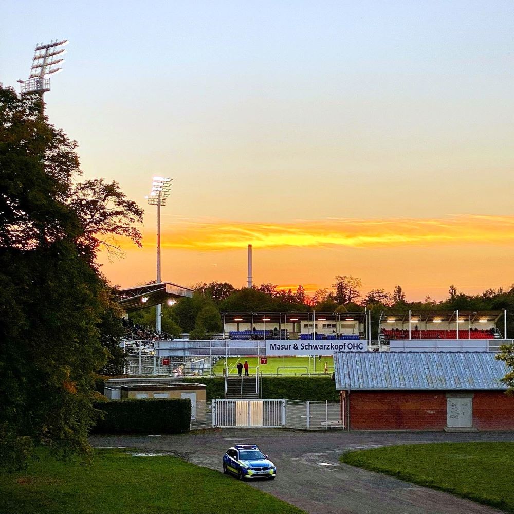 Anschließend überquerte ich den Main, da am anderen Ufer um 19 Uhr die Regionalligabegegnung Viktoria Aschaffenburg vs. Türkgücü München angestoßen werden sollte. Ich drohte jedoch aufgrund meiner Bummelei die ersten Minuten zu verpassen. Aber kaum war das bis zu 9.000 Zuschauer fassende Stadion am Schönbusch in Sicht, vernahm ich eine Durchsage aus den Lautsprechern. Das Spiel würde erst 15 Minuten später angepfiffen werden, da der Gast aus München aufgrund eines Staus später als erwartet eintraf. War mir sehr recht. Zumal ich mangels Ortskenntnis zunächst zielstrebig die Gästekasse ansteuerte und nun nochmal fast das ganze Stadion umrunden musste.
