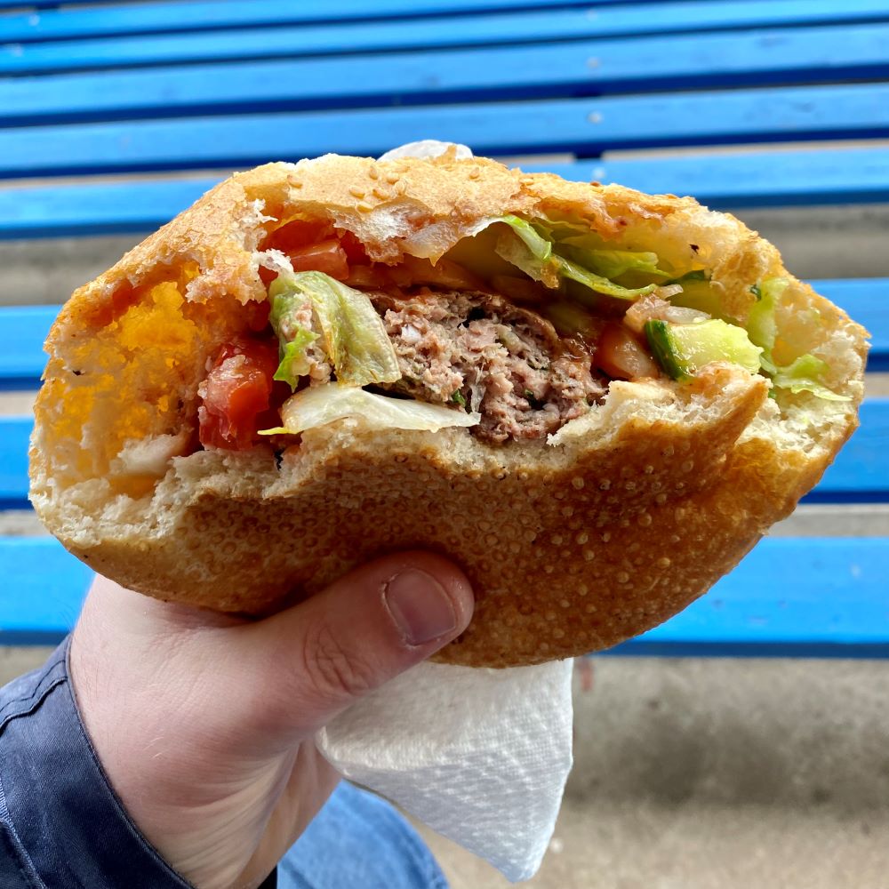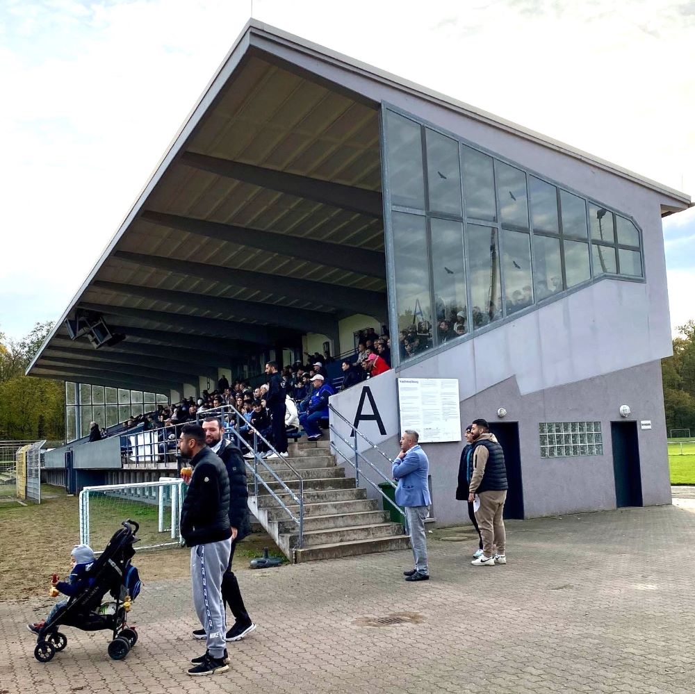 Doch nun zum Hauptgrund meines heutigen Abstechers nach Hanau; 14 Uhr empfing der Hanauer SC 1960 den VfR Fehlheim. Erster gegen Dritter und somit Spitzenspiel der hessischen Verbandsliga Süd (6. Liga). Dort wurde nicht nur mein unersättlicher Hunger nach Fußball gestillt, sondern auch das Mittagessen nachgeholt. Drei Köfte mit Salat im Fladenbrot (6 €) und eine Rindswurst im Fladenbrot (3,50 €) erfüllten den Job zu meiner Zufriedenheit.
