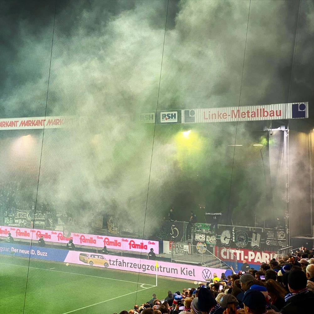 Zum Auswärtsspiel bei der KSV Holstein war die Abfahrt des von der Fanszene organisierten Sonderzugs leider nicht mit meinen Arbeitszeiten zu vereinbaren und Urlaubstage hat der Don in 2022 bekanntlich keine mehr. Stattdessen brachte mich die DB nach Feierabend pünktlich, aber unspektakulär nach Kiel (58 € return). Exakt 17 Uhr betrat ich den Boden der Fördestadt und 90 Minuten vor Anpfiff hatte es keinen Sinn noch irgend etwas Touristisches anzugehen. Da das Kalenderblatt heute den 11.November offenbarte, wäre natürlich ein kleiner Laternenumzug zum Stadion fesch gewesen. Aber ich hatte meine Martinslaterne im Design eines greisen Hörgeräteakustikermeisters leider daheim vergessen und außerdem würde die Fanszene des Hannoverschen Sportvereins sicher noch für genug Rabimmel, rabammel, rabum am heutigen Abend sorgen.