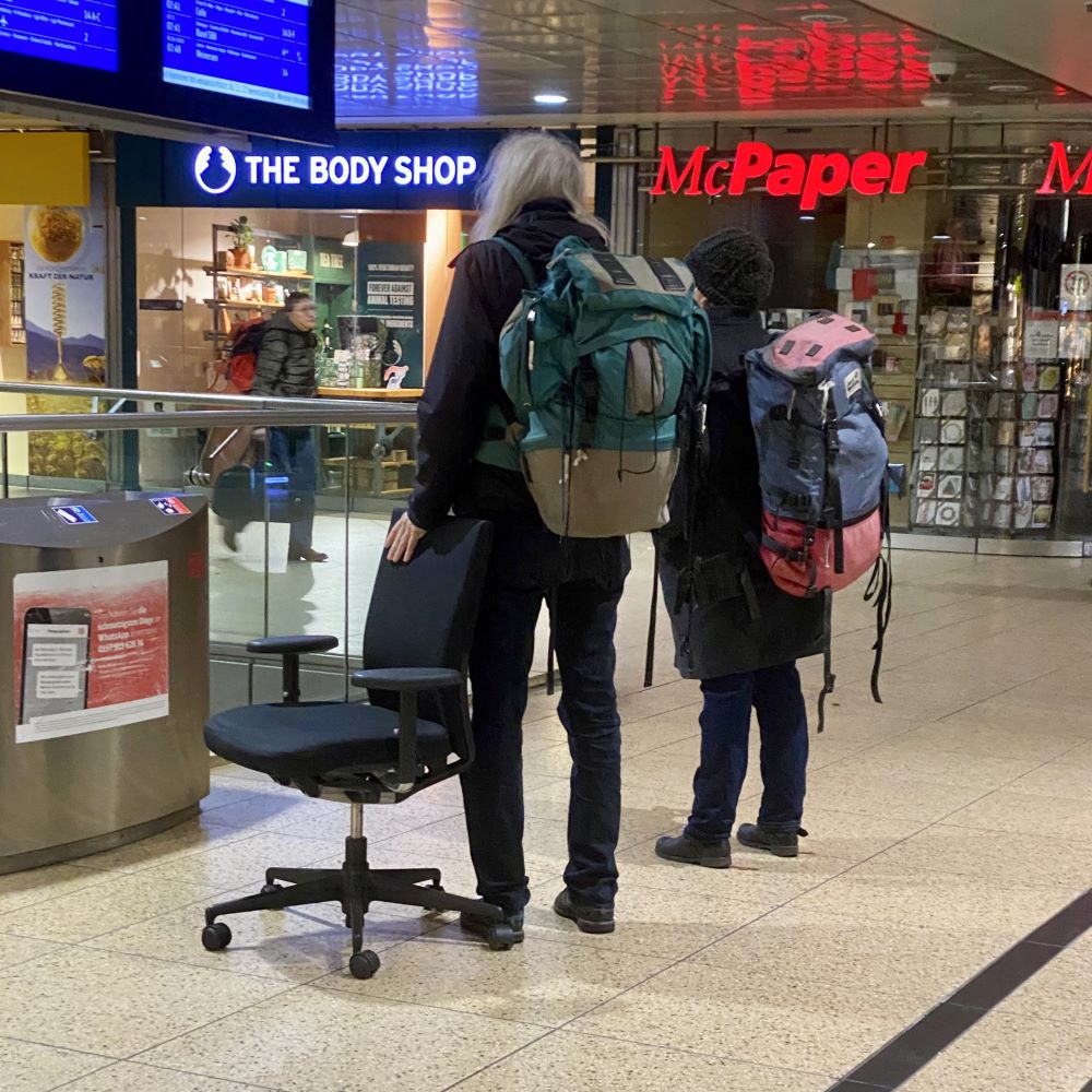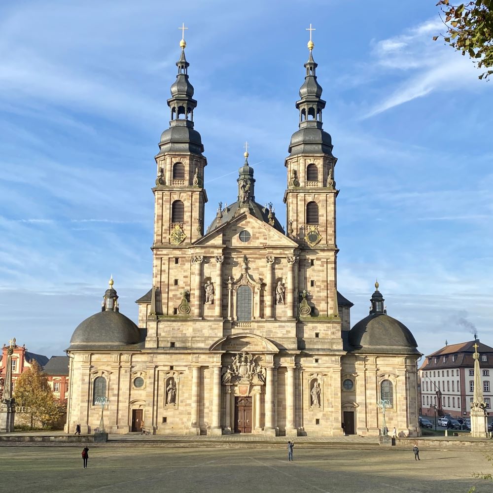 Als ewiger Optimist war ich guter Dinge dem Ostschlager CFC vs. FCC doch noch beiwohnen zu dürfen. Beschwingt nutzte ich meinen ungeplanten Kurzaufenthalt in Fulda nun für einen kleinen Spaziergang durch die Innenstadt (ca. 3 km). Bei angenehmer Morgensonne machte die Barockstadt eine gute Figur und ich war um 10:10 Uhr zurück am Hauptbahnhof, wo ich den erwähnten ICE nach Erfurt bestieg. Der fuhr pünktlich um 10:12 Uhr in Fulda ab und sollte seinen Erfurter Halt laut DB App um 11:17 Uhr haben. Aber das Pech blieb mir treu und 10 Minuten Verspätung wurden unterwegs absehbar. Bestimmt hatten sich irgendwo auf der Strecke radikalisierte Aktivisten aus dem so genannten liberalkonservativen Lager an die Gleise geklebt, um für motorisierte Individualmobilität und vor allem für FREIHEIT!!! zu demonstrieren.