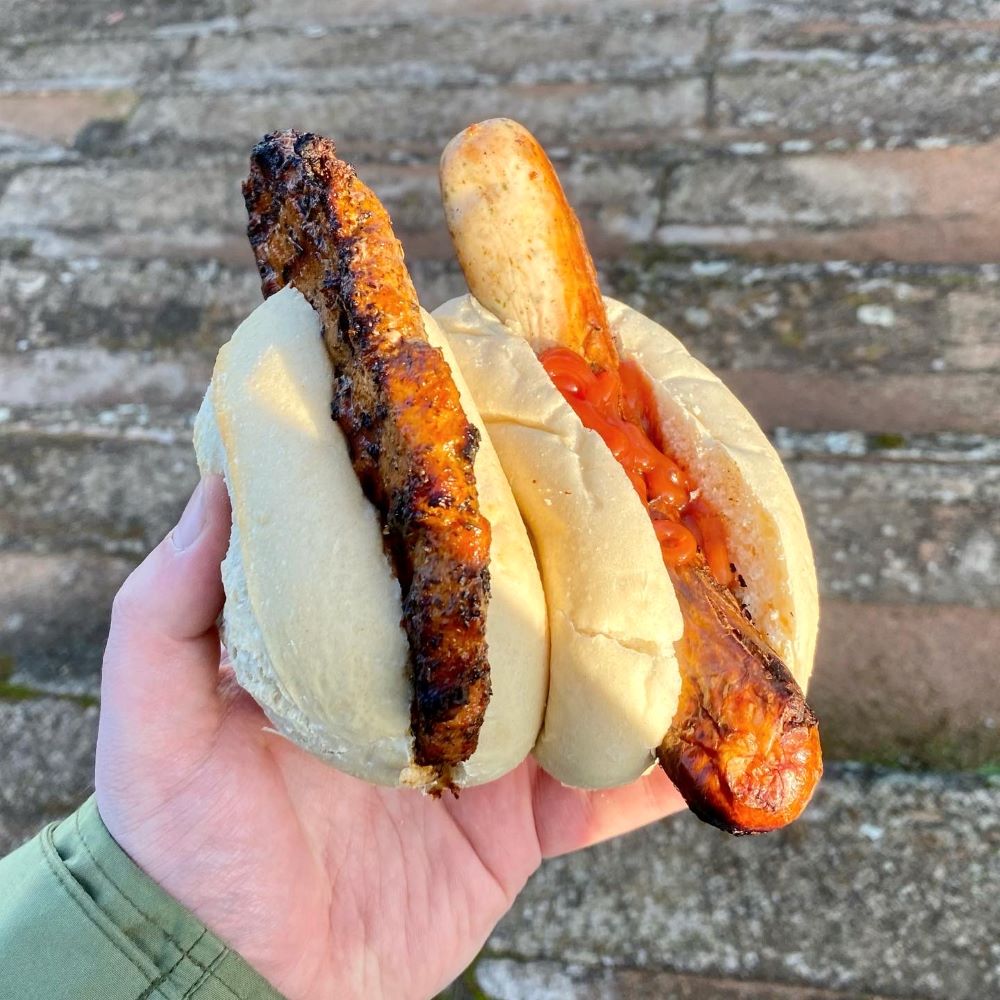 Bei all der hippen Attitüde wunderte mich schon fast, dass das Catering keinem Streetford Market glich. Nicht mal schwarze Latexhandschuhe trug der Grillmeister, der mir Bratwurst (3 €) und Nackensteak (4 €) zur Stillung meines mittäglichen Hungergefühls reichen durfte. Immerhin stellte ich jetzt fest, dass Werte wie Awareness und Responsibility bei Delay Sports gelebt werden. Um Gerhard Schröders russischen Busenfreund mit den blutigen Händen nicht indirekt bei seinem Raubzug in der Ukraine zu unterstützen, blieb der Gasofen zum Aufbacken der Brötchen heute aus. Passend zu diesem couragierten Zeichen wurde zum Einlaufen der Teams „Heart of courage“ von Two Steps From Hell gespielt.
