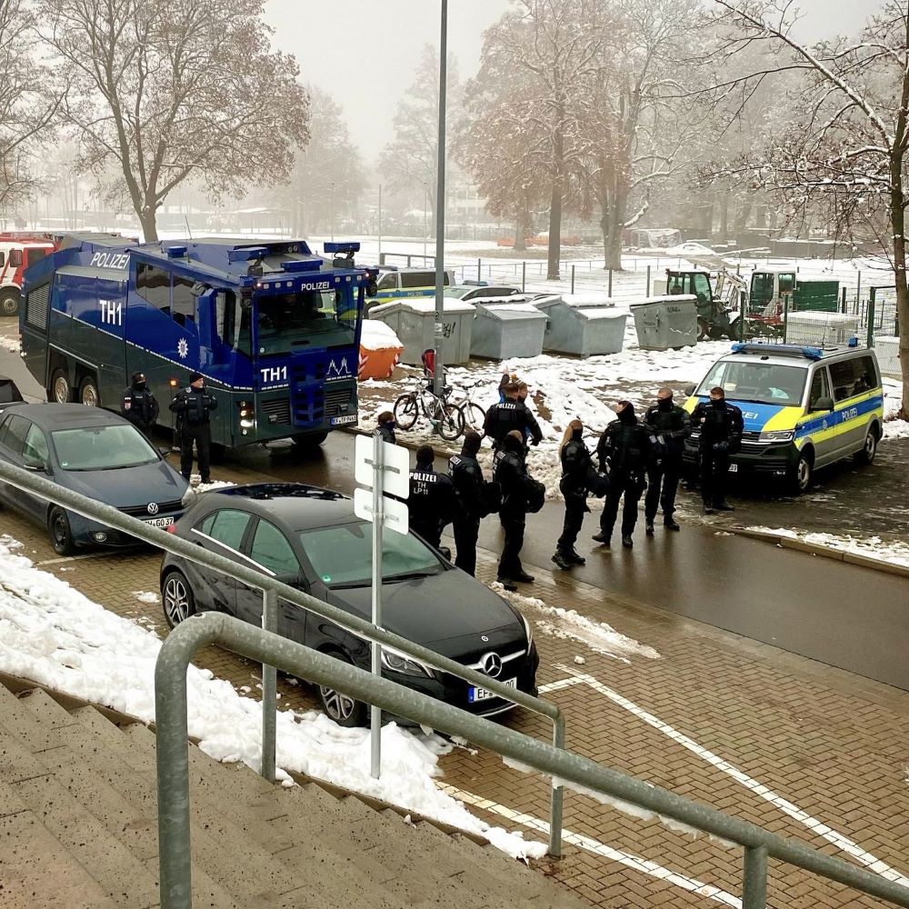 Bei derlei Veranstaltungen dürfte die Polizei auch deutlich weniger präsent sein, als bei so mancher Ansetzung des FC Rot-Weiß. Quantitativ und qualitativ wurde heute seitens der Staatsmacht mächtig was aufgeboten. Inklusive Pferdestaffel und Wasserwerfern. Da wunderte es mich auch nicht, dass zum regulären Preis für einen Sitzplatz auf der neuen Haupttribüne (22,50 €) obendrein ein Sicherheitszuschlag von 3 € pro Ticket für dieses Risikospiel erhoben wurde. Beim Derby gegen Jena hätte ich diese Leistungsschau der Exekutive nachvollziehen können, aber gegen Energie Cottbus wirkte das doch übertrieben. Klar, beide Fanlager haben gewaltbereite und gewaltsuchende Anhänger in ihren Reihen und sind einander auch nicht grün, aber es ist meines Wissens trotzdem kein Duell mit großer Gewalthistorie.