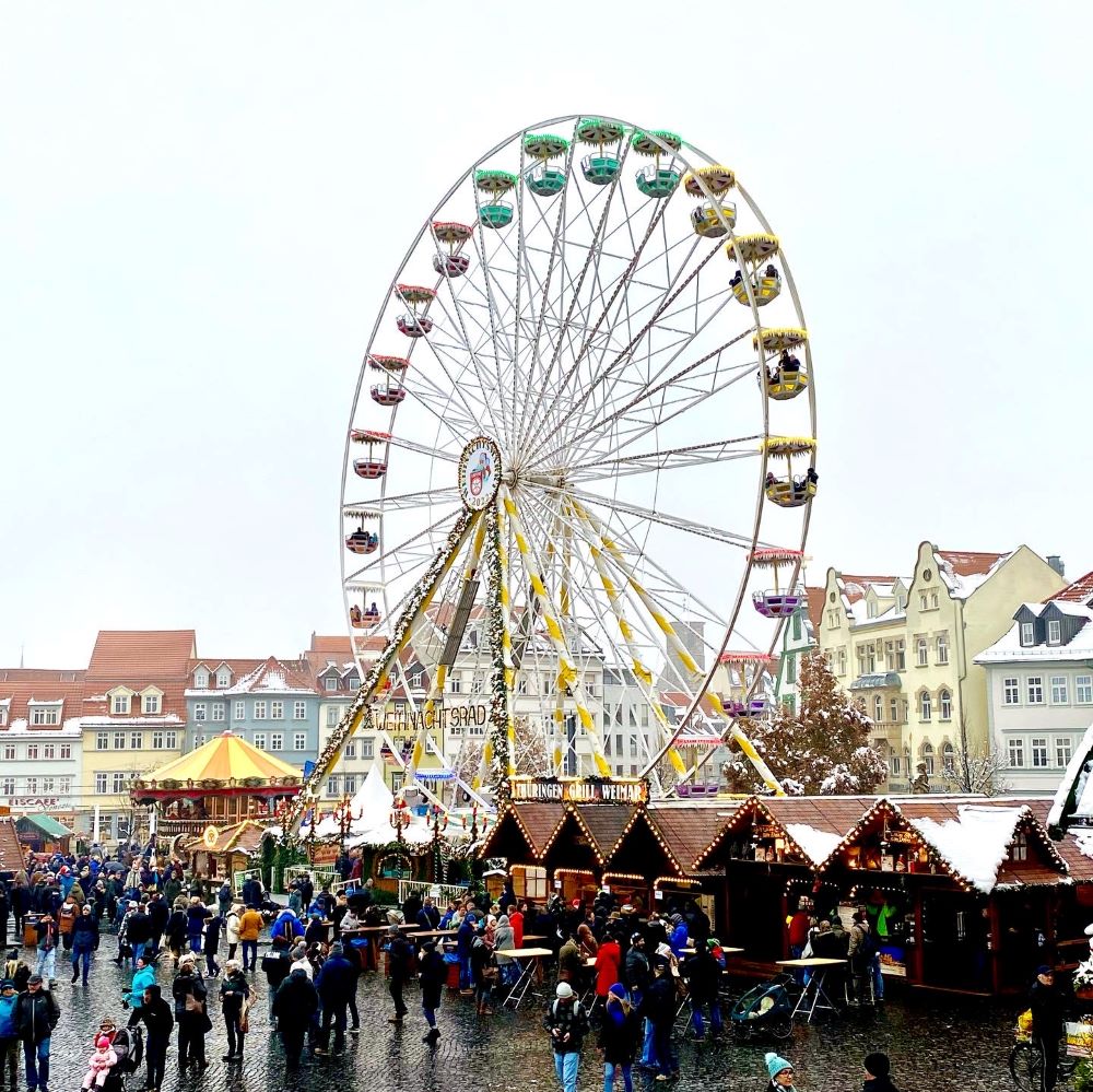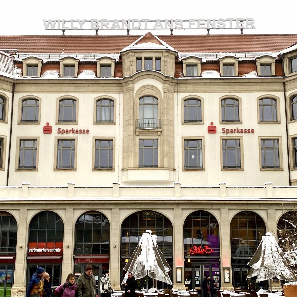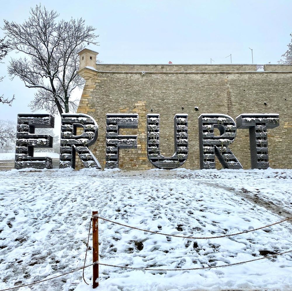Den egapark hebe ich mir mal für eine andere Jahreszeit auf, aber auch für die Erfurter Altstadt habe ich nur blumige Worte übrig. Die sozialistischen Bausünden halten sich in Grenzen und die historische Bausubstanz wurde seit 1990 flächendeckend saniert. In drei Stunden gelang mir der Besuch der meisten Sehenswürdigkeiten und Zeit für eine leckere Thüringer Rostbratwurst (4 €) auf dem Weihnachtsmarkt blieb ebenfalls. Doch dann rief König Fußball. Um 13 Uhr stand mein dritter Besuch im Erfurter Steigerwalstadion an. Eigentlich war jener bereits im September geplant, aber Krankheit verhinderte das Beiwohnen beim Thüringenderby Rot-Weiß Erfurt vs. Carl Zeiss Jena (Vgl. Lübeck 09/2022).