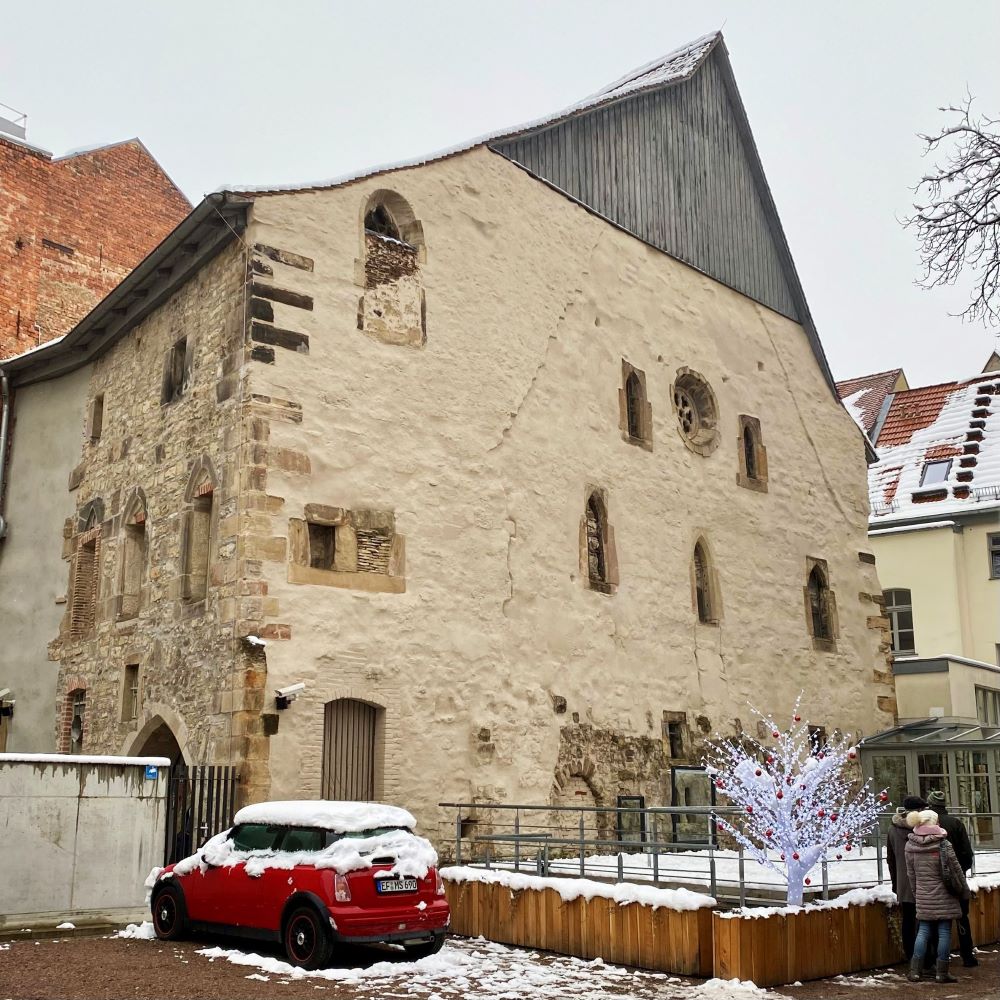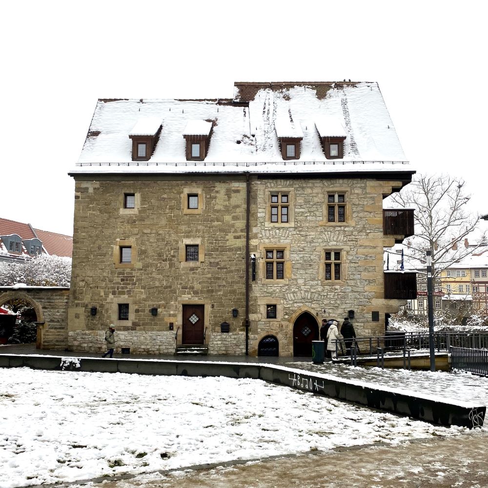 Im 12.Jahrhundert wich die erste Stadtfestigung außerdem einer mächtigen Stadtmauer mit ca. 8.000 m Länge, zahlreichen Türmen und acht großen Toren. Dazu existierte eine Pfalz auf dem Petersberg und die Türme von etlichen Kirchen und Klöstern ragten innerhalb der Stadtmauern empor. Für Zeitgenossen muss Erfurt im Hochmittelalter eine höchst beeindruckende Silhouette gehabt haben und erfreulicherweise kann man das mittelalterliche Stadtbild bis in unsere Tage optisch gut nachvollziehen. Olfaktorisch fehlt uns dagegen zum Glück die Vorstellungskraft für die damalige Zeit. Gerade Erfurt verbinde ich seit Ausgabe 270 des Podcasts Geschichten aus der Geschichte mit einem besonders beschissenen Ereignis im späten 12.Jahrhundert.