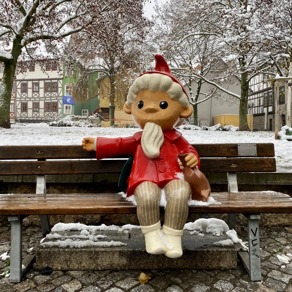 Bereits um 5:30 Uhr öffnete ich heute das vierte Türchen meines Adventskalenders und ’ne gute Stunde später saß ich im Metronom nach Göttingen. Da ich Anfang Dezember eine kurzfristige witterungsbedingte Spielabsage für möglich hielt, hatte ich mir ausnahmsweise nicht frühzeitig ein Sparpreisticket für den Fernverkehr gesichert. Das Spiel stand wegen des Wintereinbruchs in Mitteldeutschland auch tatsächlich auf der Kippe. Doch 150 Freiwillige hatten am Samstag fünf Stunden lang Schnee im Steigerwaldstadion geschaufelt, so dass die Platzkommission am Vorabend grünes Licht gab. Also nichts mit Sofasonntag und ich löste morgens das Quer-durchs-Land-Ticket für 42 €. Ging es halt lediglich in Nahverkehrszügen nach Erfurt, was sowieso nur minimal länger dauern sollte.
