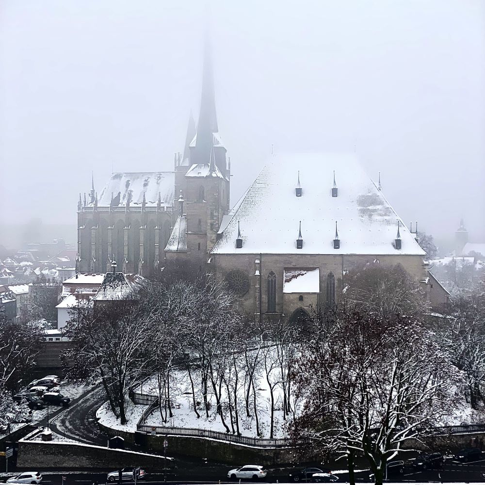 Zu der herausragenden Stellung passt ebenfalls, dass 1392 in Erfurt mit der Universitas Studii Erfordiensis eine der ältesten Universitäten auf deutschem Boden den Lehrbetrieb aufnahm. Rasch entwickelte sich diese zu einer der bedeutendsten Lehranstalten nördlich der Alpen. 1501 immatrikulierte sich auch ein gewisser Martin Luther in Erfurt und schloss sein Studium der Freien Künste 1505 als Magister ab. Kurz darauf trat er als Novize in das Erfurter Augustinerkloster ein und schloss ein Theologiestudium an. 1507 erfolgte außerdem Luthers Priesterweihe in Erfurt. Es verschlug Luther zwar bald nach Wittenberg, doch nachdem er seine Berufung gefunden hatte, kehrte er noch mehrmals als Reformator nach Erfurt zurück. Mit Erfolg. In den 1520er Jahren wendete sich die Bürgerschaft mehrheitlich dem evangelischen Bekenntnis zu. Das war zwar nicht im Sinne des Erfurter Landesherrn (immer noch der Mainzer Erzbischof), aber Verträge besiegelten letztlich die Religionsfreiheit der Erfurter.