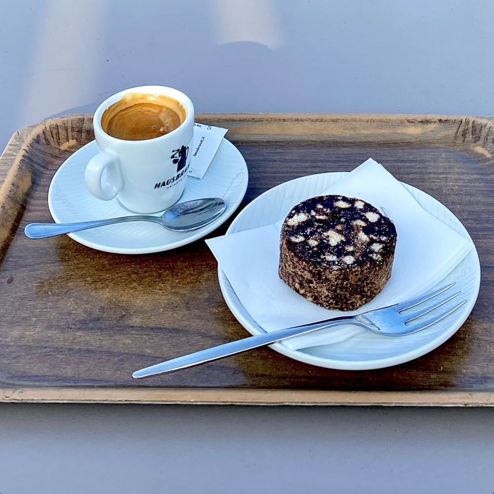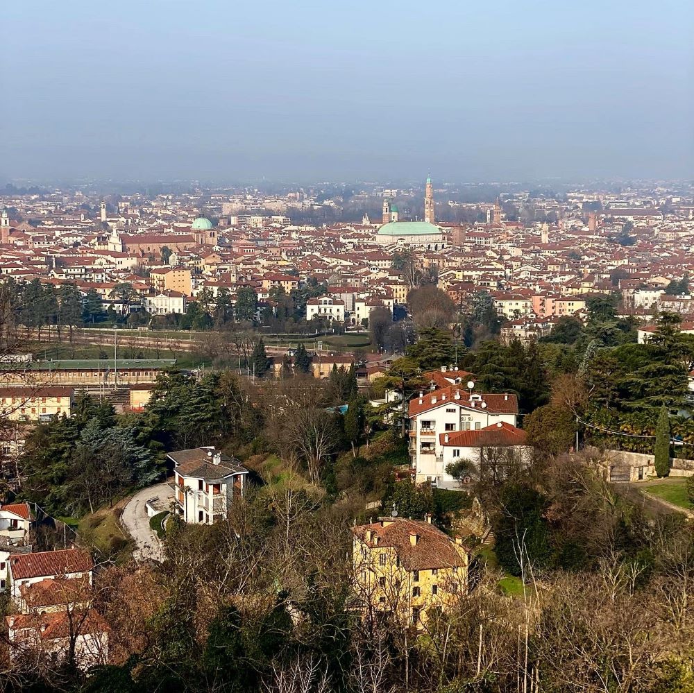Nächster Stopp meiner kleinen Runde auf den Hügeln oberhalb der Stadt war nun die Wallfahrtskirche Basilica Santuario della Madonna di Monte Berico. Als ich jene gegen 14 Uhr erreichte, sollten ihre Tore noch 30 Minuten für Besucher verschlossen bleiben. Ich machte deshalb auf der nahen Panoramaterrasse des Lokals Al Pellegrino zunächst ebenfalls eine kleine Mittagspause. Begleitet von Caffè lungo und Salame di cioccolato genoss ich dabei einen tollen Ausblick über Vicenza.