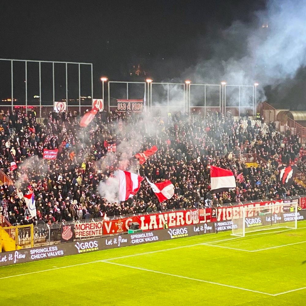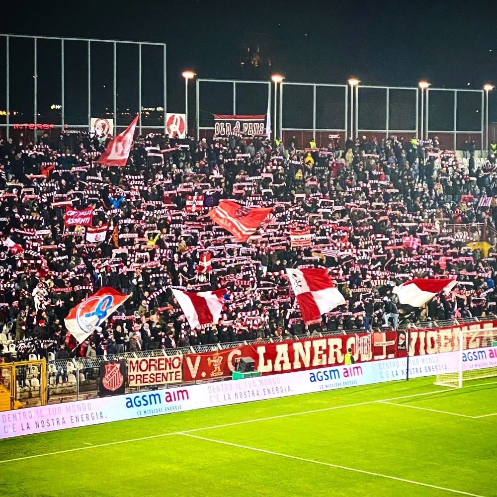 Dass Renzo Rosso wenig später in Feierlaune war, weil sein Lieblingsclub AC Milan – wo Diesel ebenfalls als Sponsor engagiert ist – Meister wurde, während Vicenza abstieg, wurde zur weiteren Hypothek im Verhältnis zwischen dem rechtlichen Eigentümer des Clubs LR Vicenza und den ideellen Eigentümern aus der Kurve. So eine Fehde ist zusammen mit sportlichem Mißerfolg eine besonders toxische Mischung und die heutige Heimniederlage gegen Aufsteiger Novara FC machte natürlich nichts besser. Eine 1:0 Führung zur Pause hatte man aus der Hand gegeben und nach Abpfiff wurde auf den Rängen gepfiffen, gepöbelt und wild gestikuliert.
