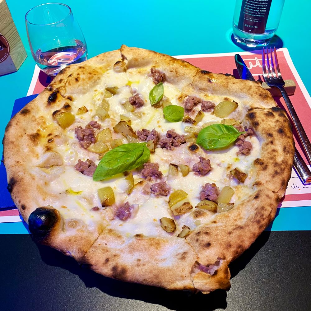 Das Häufchen aus Novara hatte nun fast den gleichen Heimweg wie ich, saß jedoch nicht mit im Frecciarossa nach Milano um 20:37 Uhr. Knapp zwei Stunden später war ich wieder in der Hauptstadt der Lombardei und musste natürlich noch dringend das Abendessen nachholen. Das geschah dann nahe meines Hotel in der gut besuchten und zwanglos wirkenden Tema Pizzeria. Hier entschied ich mich für die Lombardia, einer Pizza bianca mit Fior di latte, Luganega und Patate a sfoglia belegt. War wirklich sehr lecker und zusammen mit Coperto und einer Flasche Wasser (0,75 l) musste ich insgesamt 14,50 € zahlen. Zufriedener als zur Zeit jeder Anhänger von LR Vicenza ging es wenige Minuten später ins Bett.