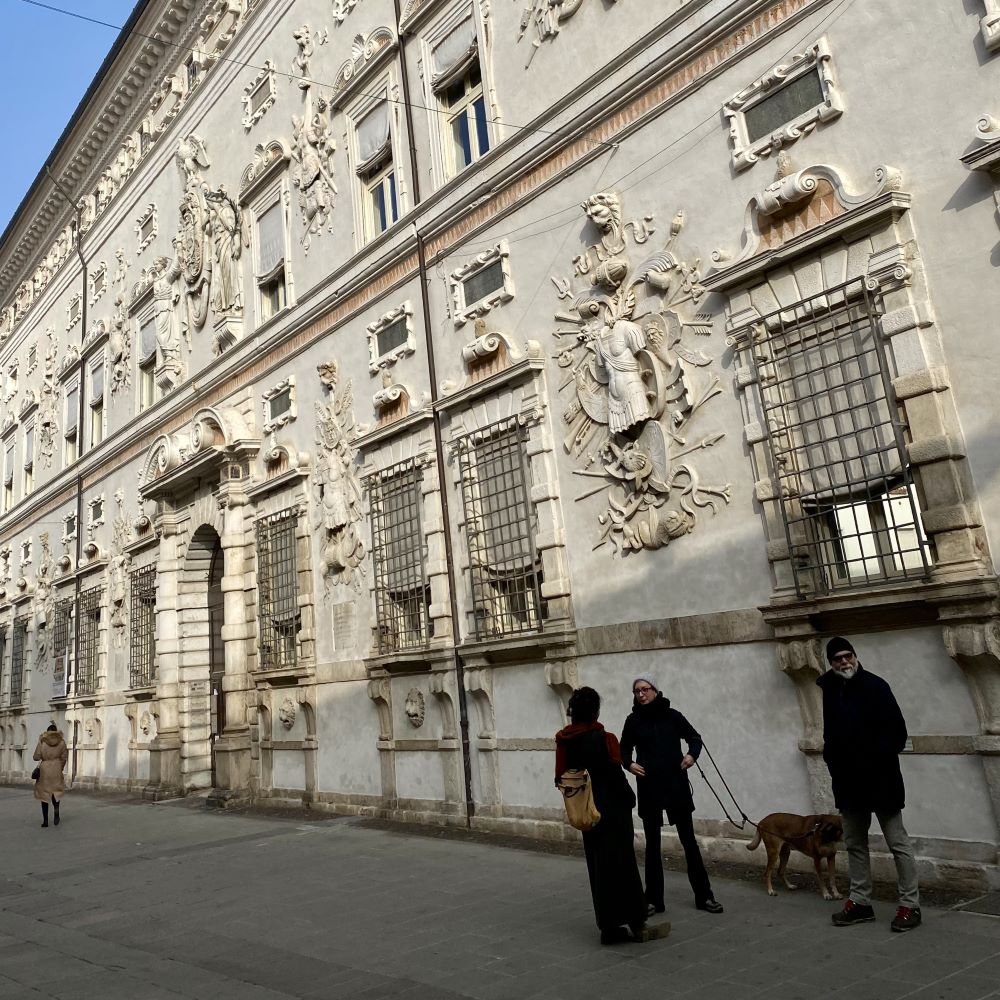 Die architektonischen Erbstücke aus dieser Zeit sind in der Tat zahlreich und machten meinen Spaziergang durch den historischen Stadtkern zu einem großartigen Erlebnis. Besonders fallen natürlich die herrschaftlichen Palazzi ins Auge. Allen voran der Palazzo dei Diamanti mit seiner Fassade aus über 12.500 pyramidenförmigen Marmorblöcken, die an geschliffene Diamanten erinnern und im richtigen Licht auch ähnlich funkeln. Wahrscheinlich ganz im Sinne des Auftraggebers Ercole I d’Este, beheimatet der 1567 vollendete Palazzo heute eine große Kunstsammlung mit herausragenden Werken der Scuola ferrarese (Schule von Ferrara).