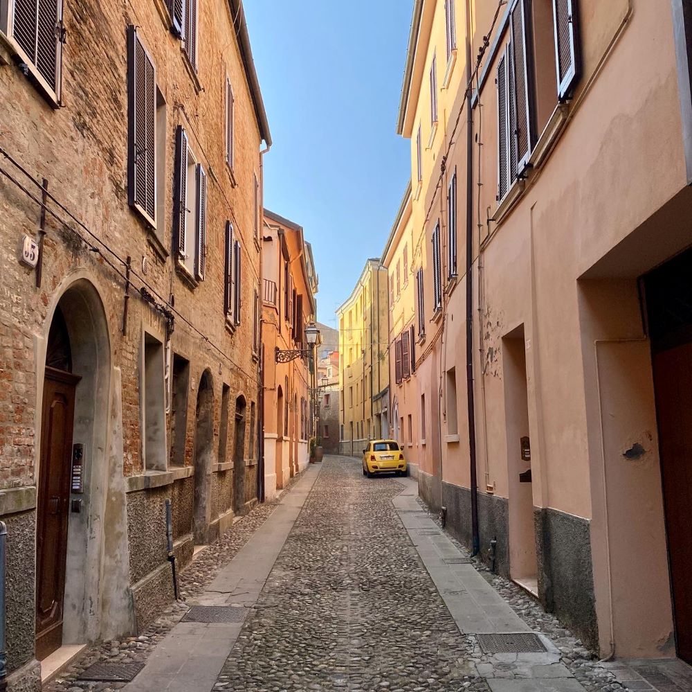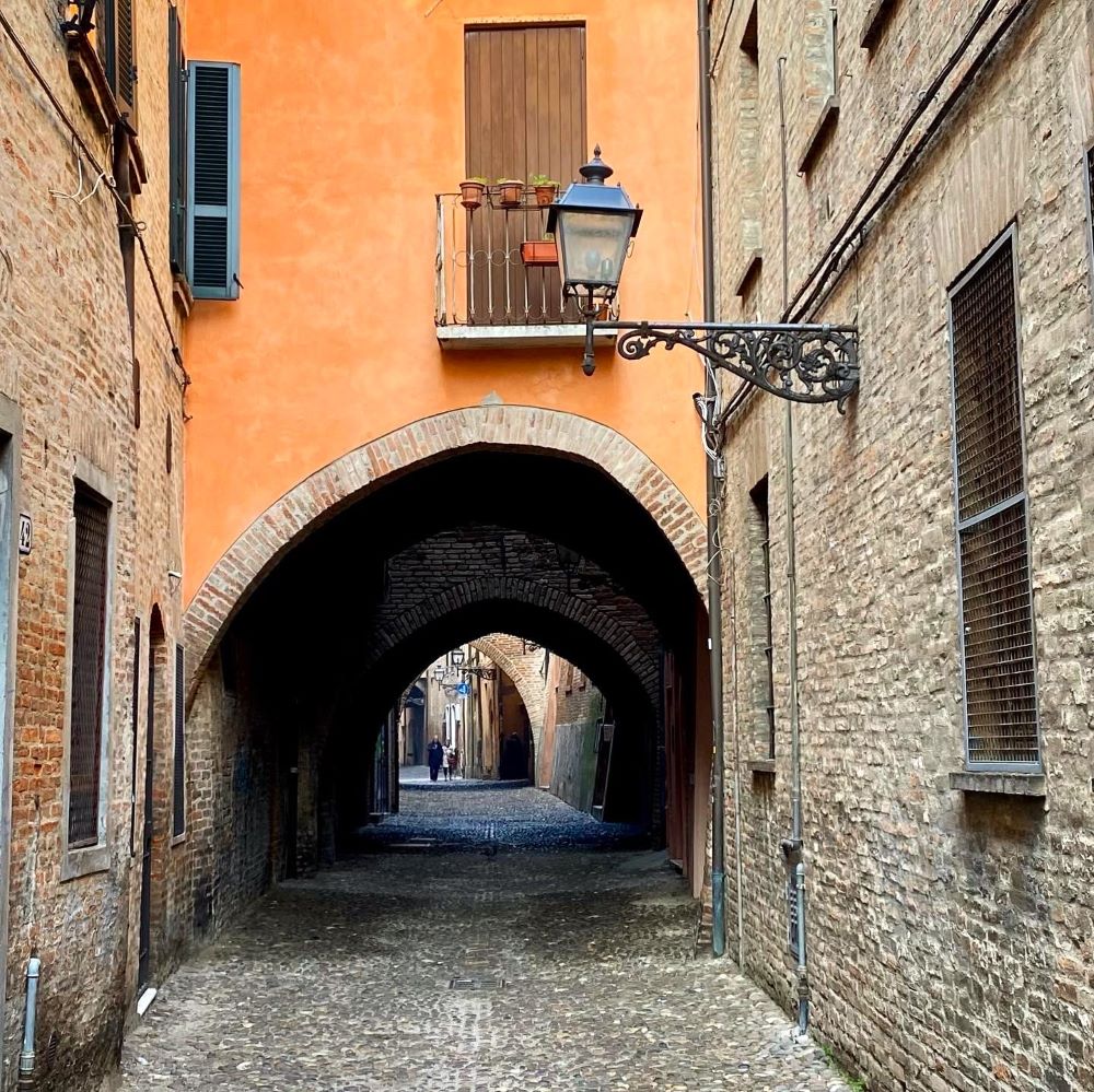 *Ich habe tatsächlich keine historische deutsche Bezeichnung für Ferrara gefunden. Aber es ist für mich auch völlig ausgeschlossen mit der Struktur der Titelzeilen auf der Italienreise zu brechen. Da der Stadtname sich vom lateinischen Ferrum ableiten dürfte, habe ich mich einfach für Eisenstadt entschieden. Respektive Eisenstadt am Pfad. Denn es muss natürlich von Eisenstadt im Burgenland unterscheidbar sein und Pfad ist die alte deutsche Bezeichnung des Flusses Po.