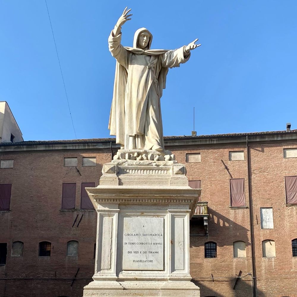 Stattdessen erbte Niccolòs unehelicher Sohn Leonello 1441 die Markgrafschaft und als dieser ohne legitimen Erben 1450 dahinschied, wurde mit Borso ein weiterer Bastard von Niccolò zum Markgrafen von Ferrara, Modena und Reggio. Wie im vorigen Bericht aus Modena bereits erwähnt (Vgl. Modena 02/2023), wurde Borso d’Este 1452 vom Kaiser zum Herzog von Modena (und Reggio) erhoben. 1471 bekam er außerdem Ferrara als päpstliches Lehen (Modena und Reggio lagen in Reichsitalien und waren damit kaiserliche Lehen, während Ferrara zum Kirchenstaat gehörte). Diese Zementierung der Macht des Hauses Este in der heutigen Region Emilia-Romagna konnte Borso jedoch nur kurz genießen. Denn 1471 markiert gleichsam sein Todesjahr.