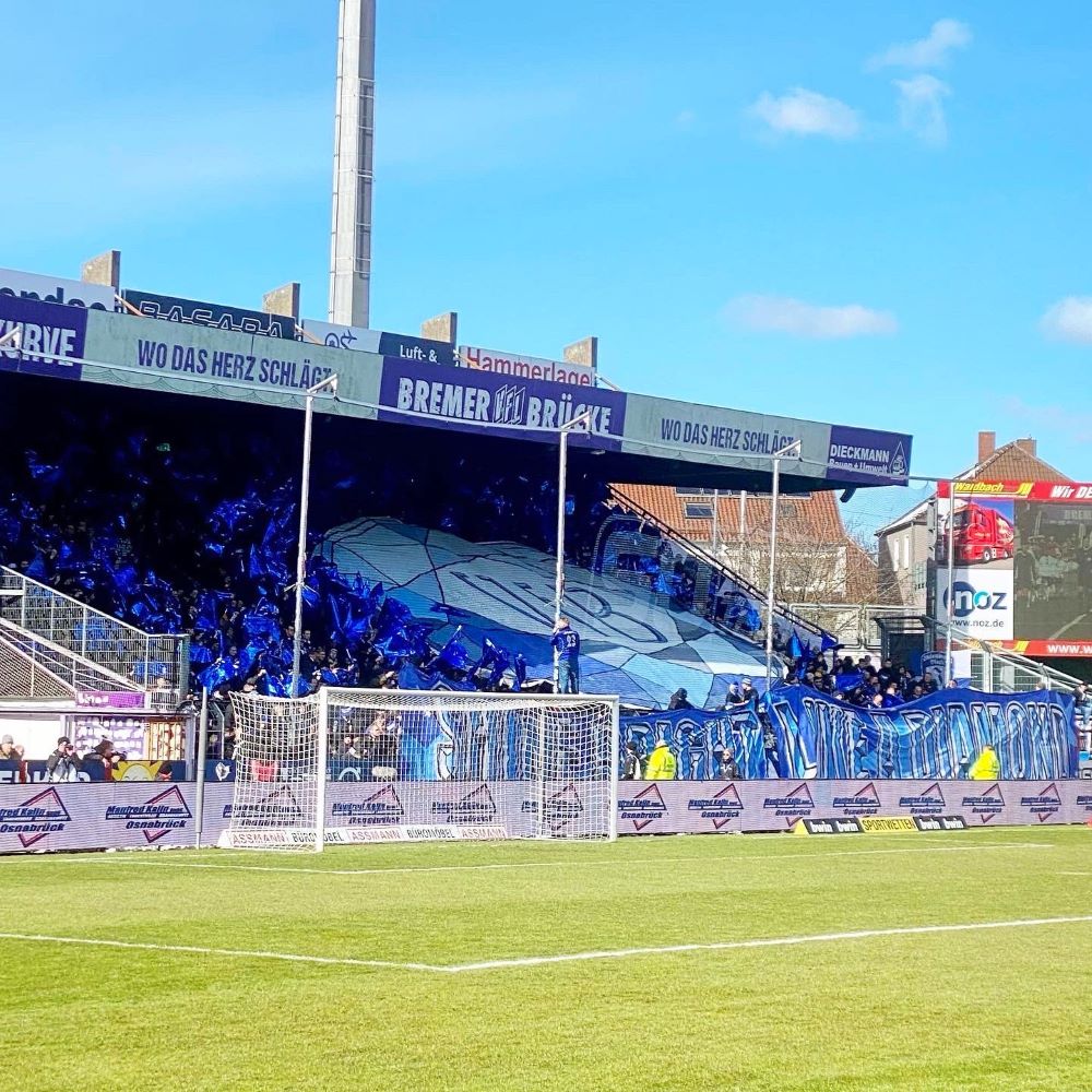 Denn jubeln durfte im 1933 eröffneten Stadion am heutigen Nachmittag nur der formstarke Gastgeber. Zwar hielt der akut abstiegsgefährdete Aufsteiger aus der Huntestadt zunächst gut mit, doch in der 43.Minute knipste Ba-Muaka Simakala sein zwölftes Saisontor. Dass kurz nach der Halbzeitpause durch Omar Traoré auf 2:0 erhöht wurde (52.Min), sorgte für erste Siegesgewissheit bei den Fans und wahrscheinlich auch bei der Mannschaft. Man nahm nun etwas Tempo aus der Partie und die Oldenburger fanden weiterhin kein Mittel die violett-weiße Verteidigungsreihe zu knacken. Dieses Osnabrücker Bollwerk dürfte auch dem heute anwesenden Bundesverteidigungsminister Boris Pistorius gefallen haben, der bekanntlich in Osnabrück verwurzelt ist und sich seit Jahrzehnten zum VfL bekennt.