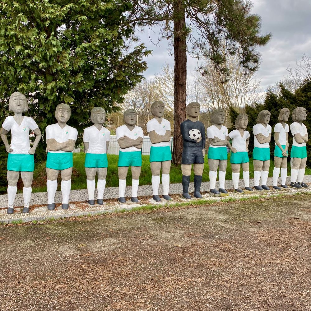 Wenig später endete ein fast schon revolutionär-friedliches109. Leipziger Derby ohne Sieger. Auf der Heimseite konnte man a) mit der Leistung und der Einstellung der Mannschaft zufrieden sein und b) wurde dem Erzrivalen wenigstens das ersehnte Triple verwehrt. Nichtsdestotrotz zelebrierten die Lokisten nach Abpfiff ihre gute Derbybilanz in dieser Saison und überreichten der Mannschaft einen Pokal mit der Gravur „Stadtmeister 2022/23 – Kein Königreich ist größer als wir – Lok ist die Stadt“. Mich zog es unterdessen schnurstracks zur Leutzscher S-Bahn-Station. Die erstbeste Bahn um 18:07 Uhr wurde just in time erreicht und somit war ich bereits gegen 21:30 Uhr wieder daheim. Es gab sicher schon denkwürdigere Leipziger Derbys, aber es war dennoch ein lohnenswerter Spielbesuch und in Kombination mit dem Zeitgeschichtlichen Forum und Auerbachs Keller definitiv ein sehr gelungener Tagesausflug.