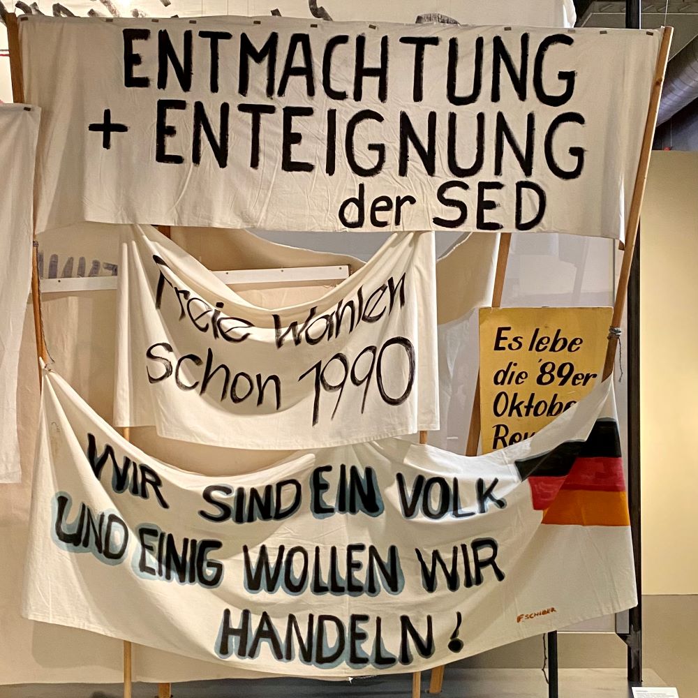 Anschließend überschlugen sich bekanntermaßen die Ereignisse. Unter dem Druck der anhaltenden Demonstrationen musste der Staatsratsvorsitzende Erich Honecker am 18.Oktober seinen Hut nehmen und am 9.November fiel die Berliner Mauer. Der anschließende Weg zur Wiedervereinigung und deren Vollzug am 3.Oktober 1990 bekommen natürlich sehr viel Platz im Zeitgeschichtlichen Forum. Aber danach endet der dokumentarische Anspruch dieser Einrichtung keineswegs. Die Herausforderungen der Nachwendezeit, wie die Aufarbeitung der SED-Diktatur und die schwierigen gesellschaftlichen und wirtschaftlichen Transformationsprozesse nach der Wiedervereinigung, kommen mittlerweile in ähnlichem Umfang wie die DDR-Geschichte zur Geltung. Man nähert sich dabei vielen Fragestellungen der Nachwendezeit an. Welche Chancen und welche Probleme brachte die neue Freiheit? Wie wirkten sich Massenarbeitslosigkeit, die Abwicklung ganzer Industrien und die Entwertung von bisherigen Biografien auf die Menschen aus?