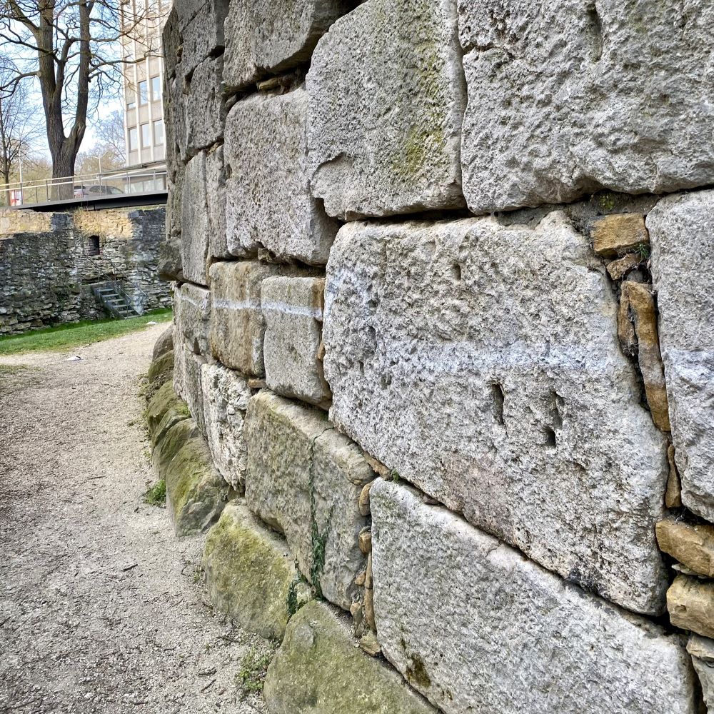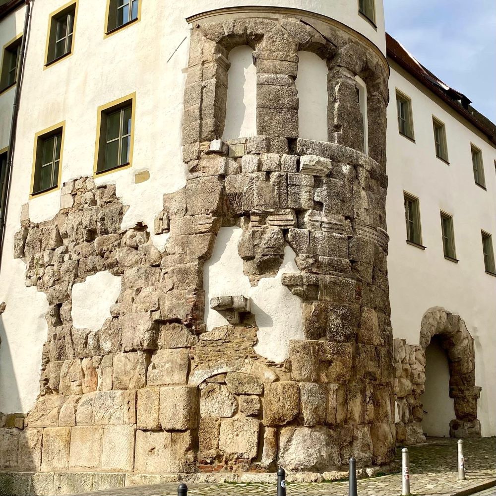Auf architektonische Zeugnisse aus der Römerzeit stieß ich heute sogleich gegenüber vom Hauptbahnhof. Man findet dort Überreste der einstigen Umfassungsmauer von Castra Regina. Ferner sollte ich später noch auf das einstige römische Nordtor Porta Praetoria stoßen, welches man 1885 beim Abriss einer Brauerei wiederentdeckte und restaurierte. Neben der Porta Nigra in Trier die einzige, zumindest teilweise erhaltene römische Toranlage auf deutschem Boden.